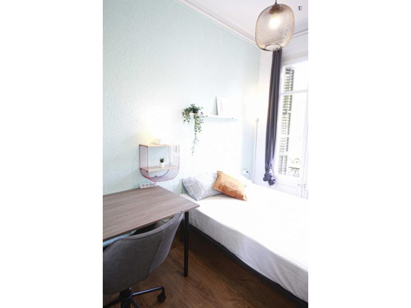 RESERVAS E INQUIETUDES TIPO DE ALOJAMIENTO - habitación privada TÉRMINOS Y CONDICIONES DE ALOJAMIENTO: - Fecha de disponibilidad: 02/05/2026 - Duración mínima del alquiler: 90 días - Máximo de huéspedes: 1 - Todas las facturas incluidas: No, para obtener más información visite el sitio web - Adicional: - Mascotas No Permitido - Fumar No Permitido DETALLES DE LA PROPIEDAD Habitación doble, con balcón, en un piso de 6 habitaciones - Ubicación: Ubicado on Sant Antoni (Eixample) en Barcelona con una variedad de lugares para cenar, tiendas esenciales y cosas que hacer, con fácil acceso al transporte público. 6 habitaciones en Apartment con 2 baños. Características - Wifi - Ascensor - Horno - Lavadora SOBRE UNIPLACES Tu Buscador de Hogares de Confianza Como plataforma en línea pionera, Uniplaces conecta a individuos, ya sean estudiantes, profesionales o familias, con una amplia gama de alojamientos en alquiler. Nuestro compromiso va más allá de las listas; verificamos cada propiedad para asegurarnos de que cumpla con nuestros estrictos criterios de comodidad y conveniencia. Elija Uniplaces para un viaje de alquiler suave, confiable y con una buena relación calidad-precio.