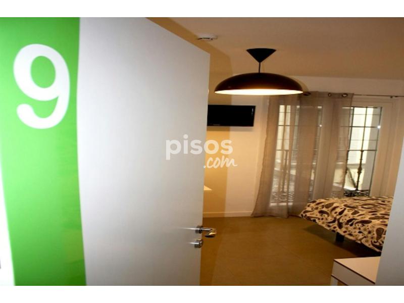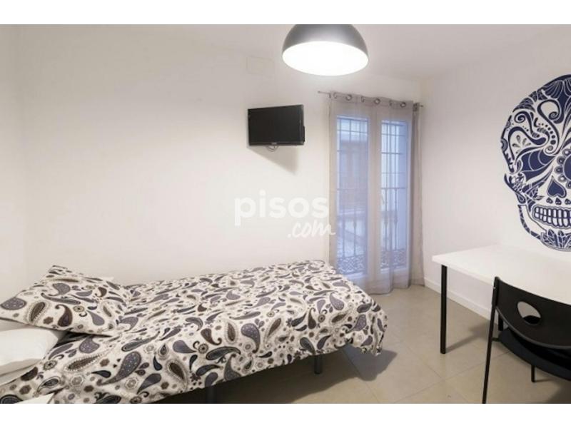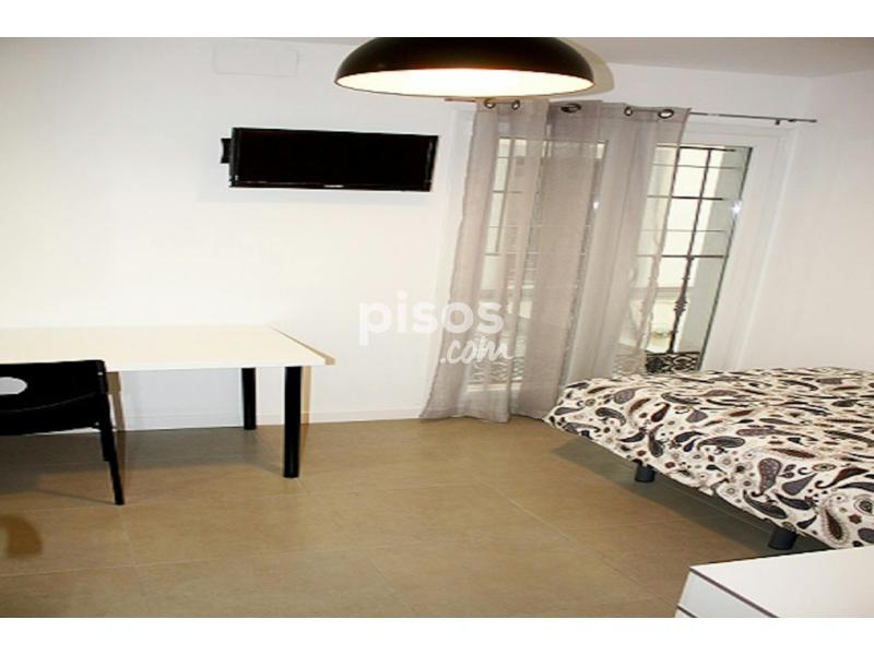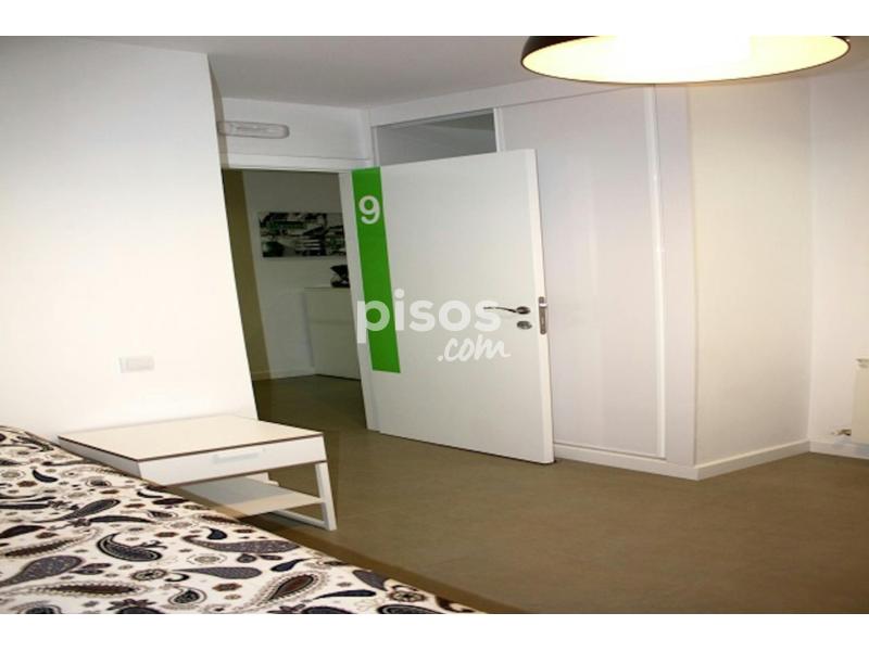 Spacious single interior room with a big window to an interior courtyard. The distribution of the furniture has been designed to maximize the space and make it as functional as possible. The white walls brings more light to the room.