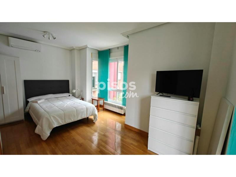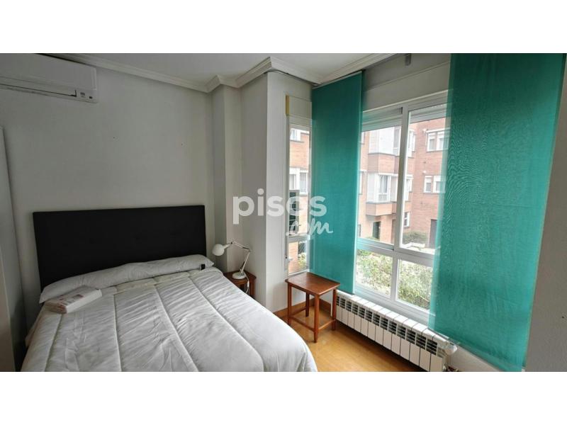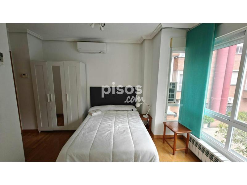 iRent Madrid alquila habitación MUY amplia, exterior y con baño privado. La habitación cuenta con una cama doble, armario de tres puertas con espejo, cómoda de 5 cajones, escritorio con silla (no visible en la foto), mesilla de noche, ropa de cama, televisión, aire acondicionado y baño privado con plato de ducha. El inmueble cuenta con otras tres habitaciones y dos baños. Cocina totalmente equipada con dos neveras, horno vitrocerámica, campana extractora, microondas, lavadora y utensilios y mensaje de cocina. Acceso a la azotea con tendedero. Situada en una urbanización privada, con piscina y portería física. En el distrito de Ciudad Lineal, cerca del Metro Alsacia (Línea 2). Todos los suministros (electricidad, agua, calefacción, Wifi Internet y limpieza semanal de zonas comunes) por 50€/mes. Se pide una mensualidad de fianza y una mensualidad (más IVA) de honorarios de agencia.