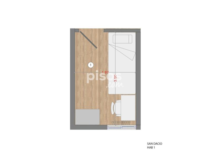 Habitación individual con medida de 7mtrs2.