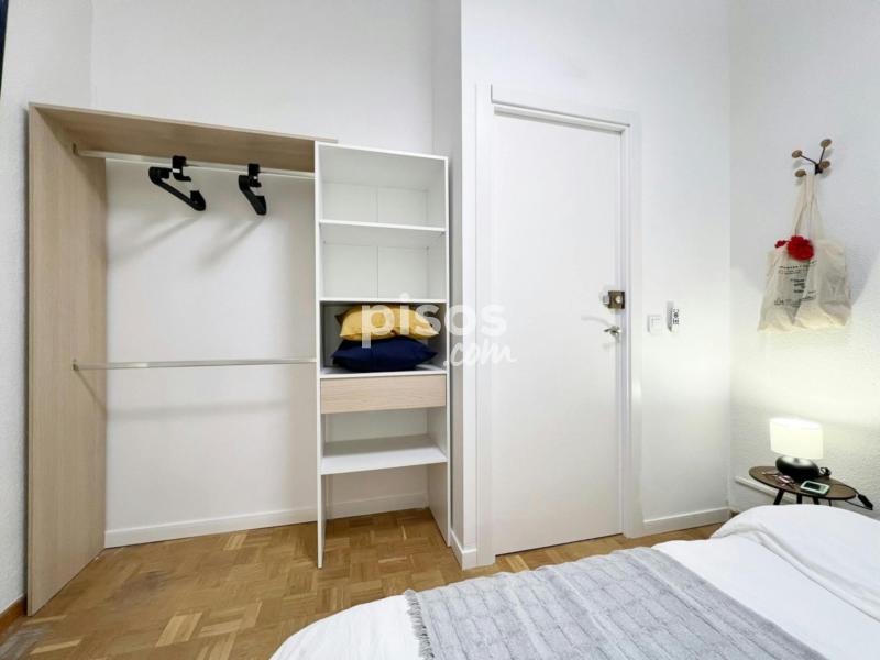 Características de la habitación: Habitación individual con medida de 7.75mtrs2. Cama matrimonial de 140 cm. TV 32”. Armario. Espacio de trabajo, con escritorio y silla. Ventana interior con vista al patio. Cerradura en la habitación. Piso de cuatro habitaciones y un baño, ubicado en la tercera planta (con ascensor). La cocina está equipada con todos los electrodomésticos, utensilios y menaje necesarios. El baño cuenta con espacio de almacenaje para tus enseres personales. Condiciones de Alquiler: DNI, NIE o Pasaporte. Mes corriente. Depósito de seguridad reembolsable (ciertas condiciones aplican). Se solicita un pago único al momento de la entrada, para gastos de gestión y mantenimiento (este importe puede variar según la temporada). Las habitaciones no incluyen: Ropa de cama, mantas o toallas. Check-in autónomo mediante cerradura inteligente. Podrás entrar al piso de forma segura y sin contacto a cualquier hora. Una vez confirmada la reserva, debes ponerte al día con todos los pagos y la documentación requerida, así recibirás las instrucciones necesarias para acceder fácilmente a la vivienda. En los casos en que se requiera hacer el check-in en la oficina del propietario, se debe concertar una cita previa, esta cita será fijada de lunes a viernes, de acuerdo a la disponibilidad. Se requiere coordinación previa. Normas: No se permiten mascotas y está prohibido fumar. Los límites de edad establecidos para el alquiler son entre los 18 y 39 años. Transporte: - Estación Príncipe Pío a 15 minutos caminando (Línea 6 y 10 del Metro). - Cercanías Renfe, C1, C7 y C10 en Príncipe Pío a 15 minutos caminando. - Paradas de los autobuses 41, 46 y 75, “San Antonio de la Florida” a 2 minutos caminando.