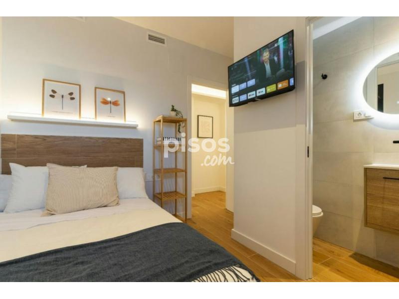 Apartment in Alejandro Sánchez This apartment has 8 bedrooms, each with its own private bathroom. It is located on the first floor and has a fully equipped kitchen with appliances (ceramic hob, refrigerators, oven, microwave) and utensils, as well as a dining area. It also offers a terrace ideal for sharing with other tenants. It is perfect for international students and young professionals, just 5 minutes walk from Urgel metro station, in a neighborhood known for its cosmopolitan atmosphere and its wide range of services and activities, an exceptional opportunity to enjoy life in Madrid! The apartment is located in Carabanchel, one of the most vibrant and multicultural neighborhoods in Madrid, known for its diversity and dynamic atmosphere. Just a 20-minute walk away is Madrid Rio, an extensive linear park along the Manzanares River, ideal for enjoying outdoor activities and green spaces. Surrounded by the neighborhoods of Comillas and San Isidro, Carabanchel offers a residential and economic environment that combines tranquility and comfort. This means that you have plenty of stores, restaurants and bars nearby, with a wide variety of stores, gyms and restaurants. It is a perfect place for those looking to live in an area with a local atmosphere, well connected and full of services. The apartment enjoys excellent accessibility to public transport, being located in the vicinity of several metro stations and bus stops on General Ricardos street. Just *4 minutes* walk away is the *Urgel* metro station with access to line 5 of the metro network. In addition, a short distance away on General Ricardos Street is the bus stop with multiple lines, such as *lines 119, 34, 35 and 118* that connects to the center of Madrid. An additional advantage is the ease of use of the *Bicimad* system, which provides a healthy and sustainable option for getting around Madrid by bicycle. With an affordable monthly subscription, approximately *€10* , it allows access to a network of more than 611 bike stations distributed throughout the city. Just a 4-minute walk away on *Calle Algorta* you have a station where you can take a bike to explore the city and then, when you reach your destination, park it at any nearby station, guaranteeing agile and practical mobility at all times. * *Madrid Río Park* Madrid Río is a huge recreational and cultural enclave parallel to the Manzanares River, which, thanks to its renaturalization, has once again boasted a surprising fauna. Historical monuments and leisure and cultural facilities next to the riverbed of a river that has recovered its biodiversity by leaps and bounds. * *San Isidro Park* This large green space is the second largest in the Carabanchel district, after the Parque Emperatriz María de Austria. Usually dedicated to the celebration of sports activities, in mid-May it becomes a fairground that hosts part of the Fiestas de San Isidro. * *San Isidro Market* A few meters from General Ricardos Street, a vibrant commercial artery, is this medium-sized market that has its roots in the middle of the last century. It occupies the site where the street stalls were once located, and is both a new and old market at the same time. - Don''''t smoke - Pets are not allowed - Parties are forbidden - Take out the trash daily - Short-term visits are allowed - (hidden) informs that in this flat a device has been installed in order to allow the monitoring of the noise level (decibels) 24 hours a day. The system emits an alert whenever the sound level exceeds the maximum allowed by the Community of Madrid, mainly between 11pm and 6am. Modern room with private bathroom in Urgel Modern room with private bathroom in Urgel in a shared apartment ideal for international students and young professionals. The room is equipped with everything you need to enjoy your stay, it has a double bed ( *120 cm* ), a large closet, AC, TV, a desk with chair and lamp and a shelf. The size of the room is *8.70 m2* , it has a high window overlooking the building''''s inner courtyard, central heating and also has its own lock on the door for added security. This room is located on the first floor of the building and has a private bathroom. The kitchen area, dining room and terrace are shared with the tenants of the apartment. For more details we invite you to view the floor plan and see the location of the room. **Bed linen is not included, only the mattress cover is provided.*