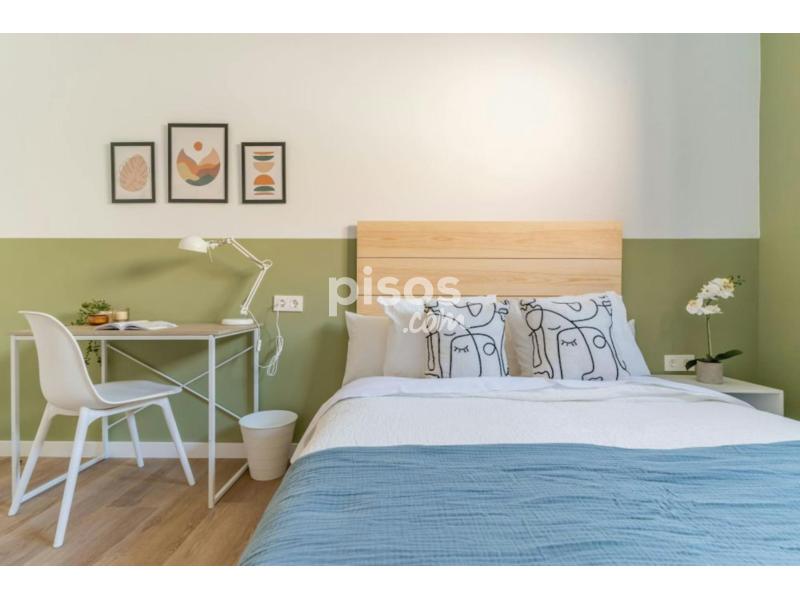 This building has 29 bedrooms, 13 bathrooms and one toilet on 4 floors. Tenants occupying floors 1 and 2 share the common areas located on floor 1, while those occupying floors 3 and 4 share the common areas on floor 3. The apartment has an elevator, stairs, storage room on floor 1, fully equipped kitchen area with appliances (ceramic hob, refrigerator, oven, microwave), kitchenware and dining area. Perfect for international students and young professionals, located only 13 minutes away from the university area and office area, known for its cosmopolitan atmosphere and its variety of services and activities, a unique opportunity to enjoy life in Madrid! This building is located in the Bellas Vistas neighborhood, however, it is on the border of three other important neighborhoods such as Cuatro Caminos, Rios Rosas and Vallehermoso. Here you can find everything you would expect from a great neighborhood near the capital. You probably won''''t find a better and safer neighborhood than Bellas Vistas in Madrid. It is located in the upper part of the city, has spectacular views and is very quiet. Here you can find everything you need to live like a real Madrileño: stores, bars, restaurants and much more. The Bellas Vistas neighborhood is located in the residential and economic area of Madrid. This means that you have plenty of stores, restaurants and bars nearby. The building enjoys excellent accessibility to public transport, being located in the vicinity of several metro stations and bus stops on Bravo Murillo street. Just a *4 minute* walk away is the *Cuatro Caminos* metro station with access to lines 1, 2 and 6 of the metro network and also *5 minutes* away is the *Alvarado* metro station that connects to line 1. In addition, a short distance away on Calle Bravo Murillo is the bus stop with multiple lines, such as *line 3* that connects to the center of Madrid. While in Paseo la Castellana is the *line 45* that connects directly to Plaza Cibeles. An additional advantage is the ease of use of the *Bicimad* system, which provides a healthy and sustainable option for getting around Madrid by bicycle. With an affordable monthly subscription, approximately 10€, it allows access to a network of more than 611 bike stations distributed throughout the city. Just *5 minutes* away on *Calle Doctor Santero* you have a station where you can take a bike to explore the city and then, when you arrive at your destination, park it at any nearby station, ensuring an agile and practical mobility at all times. * *Mercado de Maravillas:* it is a Madrid food market located on Bravo Murillo street, well known for having national and international food stalls, as well as several stores and bars. * *Parque del Tercer Depósito:* sports complex with several garden and children''''s areas. The park covers an area of 116,000 square meters, with large green areas and other areas for physical activity and sports. * *Santiago Bernabeu Stadium:* is a sports complex owned by Real Madrid Club de Fútbol, located on Paseo de la Castellana, in the Chamartín district of Madrid, Spain. - Don''''t smoke - Pets are not allowed - Parties are forbidden - Take out the trash daily - Short-term visits are allowed - (hidden) informs that in this flat a device has been installed in order to allow the monitoring of the noise level (decibels) 24 hours a day. The system emits an alert whenever the sound level exceeds the maximum allowed by the Community of Madrid, mainly between 11pm and 6am. Beautiful double room in Cuatro Caminos Beautiful double room in Cuatro Caminos in a shared apartment ideal for international students and young professionals. The room is equipped with everything you need to enjoy your stay, it has a double bed ( *135 cm* ) with storage under the bed, a large three-door closet with integrated mirror, ceiling fan, a desk with chair and lamp and a bedside table. The size of the room is *10.60 m2,* it has a high window overlooking the main street, central heating and also has its own lock on the door for added security. This room is located on the second floor of the building and has access to the two bathrooms located in the common areas. The kitchen and dining area is shared with the tenants of floor 1 and floor 2 exclusively. For more details we invite you to view the floor plan and see the location of the room on floor 1. **Bed linen is not included, only the mattress cover is provided.*