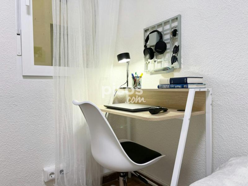 Características de la habitación: Habitación con medida de 8.29mtrs2. Cama matrimonial de 140 cm. TV 32”. Armario. Espacio de trabajo, con escritorio y silla. Ventana interior con vista al patio. Cerradura en la habitación. Piso de cuatro habitaciones y un baño, ubicado en la tercera planta (con ascensor). La cocina está equipada con todos los electrodomésticos, utensilios y menaje necesarios. El baño cuenta con espacio de almacenaje para tus enseres personales. Condiciones de Alquiler: DNI, NIE o Pasaporte. Mes corriente. Depósito de seguridad reembolsable (ciertas condiciones aplican). Se solicita un pago único al momento de la entrada, para gastos de gestión y mantenimiento (este importe puede variar según la temporada). Las habitaciones no incluyen: Ropa de cama, mantas o toallas. Check-in autónomo mediante cerradura inteligente. Podrás entrar al piso de forma segura y sin contacto a cualquier hora. Una vez confirmada la reserva, debes ponerte al día con todos los pagos y la documentación requerida, así recibirás las instrucciones necesarias para acceder fácilmente a la vivienda. En los casos en que se requiera hacer el check-in en la oficina del propietario, se debe concertar una cita previa, esta cita será fijada de lunes a viernes, de acuerdo a la disponibilidad. Se requiere coordinación previa. Normas: No se permiten mascotas y está prohibido fumar. Los límites de edad establecidos para el alquiler son entre los 18 y 39 años. Transporte: - Estación Príncipe Pío a 15 minutos caminando (Línea 6 y 10 del Metro). - Cercanías Renfe, C1, C7 y C10 en Príncipe Pío a 15 minutos caminando. - Paradas de los autobuses 41, 46 y 75, “San Antonio de la Florida” a 2 minutos caminando.