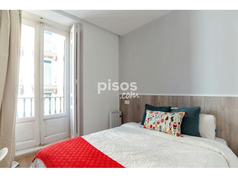 Spacious flat in Carranza Street Spacious flat in Carranza Street , located in Chamberí. It has 8 bedrooms, 2 complete bathrooms, a large living room with TV and a fully equipped kitchen with 2 fridges, washing machine, oven, microwave and vitroceramic hub. Young students and workers coming to Madrid will be in one of the best neighborhoods of the city. It''''s an area full of life and full of activities to do, perfect for shopping, dining in good restaurants and experiencing the nightlife. You can visit Plaza Mayor, the Museum of History of Madrid and Puerta del Sol , which are all very close. Additionally, it has excellent transport connections, such as San Bernardo, Bilbao and Tribunal metro stations. Come live in one of the best parts of Madrid! Near all the intersting spots of the city center entro, SOL is near you can go by walking or by metro (only 20 minutes by walking or 13 min by metro). Chamberi is a nice area to go shopping, or just having a walk around the good restaurants/ bars of the city. The flat is located in Chamberí, one of the most desirable neighborhoods to live according to the premises of Madrid. Located in the center, it is surrounded by the best shopping area and connected very well by public transport. A short distance from the apartment is the famous Fuencarral street, full of the best shops and bars that takes you to Gran Vía and Puerta del Sol. And if you like doing some sport you have the Canal Isabel II park full of green areas, sports area and much more. Metro stations: - San Bernardo (line 2) - Bilbao (lines 1 and 4) -Tribunal (lines 1 and 10) - Fuencarral Street - Plaza Dos de Mayo - Puerta del Sol - Royal Palace - Go to visit Plaza Mayor and eat a typical calamary sandwich - Learn a little bit more about Madrid''''s history in the "Museo de Historia de Madrid" - Travel to another time with the Romanticiscm Museum - Enjoy Malasana''''s bars from the "Movida Madrileña". - Don''''t smoke - Pets are not allowed - Parties are forbidden - Take out the trash daily - Short-term visits are allowed - (hidden) informs that in this flat a device has been installed in order to allow the monitoring of the noise level (decibels) 24 hours a day. The system emits an alert whenever the sound level exceeds the maximum allowed by the Community of Madrid, mainly between 11pm and 6am. Modern room in Chamberí Modern room in Chamberí, in Carranza Street. It comes with a double bed (135 cm), a desk with a chair and a lamp, a wardrobe and a bedside. It also has an incredible outdoor balcony. The room measures 9.58 m2, it has heating and door lock. It''''s ideal for young students and workers who want to live in an excellent location. *Bedding is not included, only a mattress cover is provided.