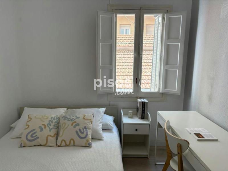 Apartment with terrace in Arganzuela Beautiful apartment in the heart of the Arganzuela neighborhood, close to the center of Madrid. Located on Ercilla Street, this apartment is the ideal place for young students and workers, as it has 5 bedrooms. The apartment features a fully equipped kitchen with an oven, microwave, refrigerator, and an exclusive-use terrace for the tenants of this apartment. It also has a washing machine and plenty of natural light. Don''''t miss the opportunity to enjoy your stay in one of the most beautiful neighborhoods in Madrid! This apartment is located in the beautiful area of the Arganzuela community, a community known for its beautiful architecture and interesting historical enrichment. The neighborhood is lively for young people who want to be part of daily life in Spain, full of places to eat, have fun, and greatly enjoy this beautiful neighborhood. Additionally, it is close to Madrid Río, one of the most renowned urban parks in Madrid. The area is well served by public transport by having three metro stations that connect you several lines of the metro network: - Metro Delicias – line 3 - Metro Legazpi – line 3 and 6 - Cercanias Renfe - line C1, C7, C10 - Several bus stations Enjoy the culture and art of Spain in the museums of the neighbourhood: Museo Reina Sofìa, Museo del Prado and the Real Jardín Botánico, in which you''''ll enjoy the most beautiful masterpieces of art and a floral paradise you won''''t find anywhere else. In the south you will find the Skatepark Madrid Rio, in which you can have fun, skate a bit and relax in the open enjoying the sport. - No smoking - No pets allowed - No parties - Trash must be taken out daily - Short-term visitors are allowed - (hidden) informs that in this apartment is installed a device that allows to control the noise level or decibels 24 hours a day, issuing an alert when the sound level exceeds the maximum allowed by the Community of Madrid, mainly between 23.00 and 6.00 hours. Modern room in Embajadores Modern double room in Arganzuela, located on Ercilla Street. It comes equipped with a double bed, a desk with a chair and TV, a wardrobe, a nightstand, and a window that allows plenty of natural light. This room is perfect for young students and workers. *Bed linen is not included, only a mattress cover is provided.