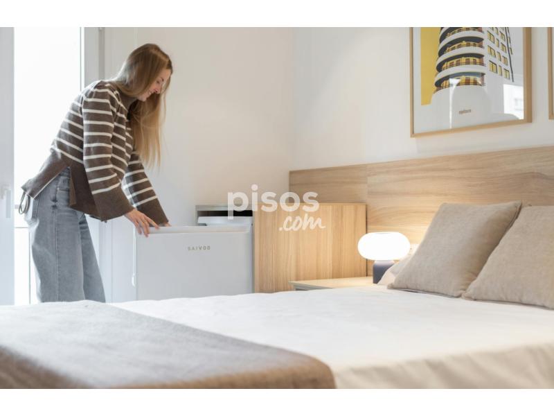 Rent a high-quality room in a shared apartment with 4 bedrooms, 2 bathrooms, and an equipped kitchen. *Equipped room: Bed with storage base, desk, wardrobe, 50" TV with Chromecast, personal refrigerator, heating, and fan. Soundproofed walls. *Common areas: Centralized air conditioning and a fully equipped kitchen (includes dishwasher). *Security: Digital access to the entire building.