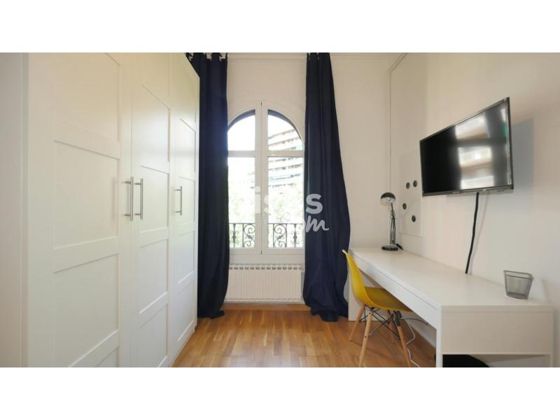 This room in our Eixample coliving home has its own private TV so you can relax watching films and it also has a big window facing to the stret.