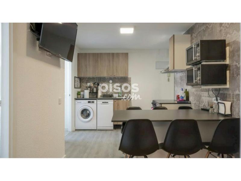 This 7 beedroom flat is located up north the center of Madrid near Nuevos Ministerios. Each room has its own lock. Both the shared areas and the bedrooms are completely furnished. The kitchen is also fully equipped with a washing machine, oven, fridge, 2 microwaves and a dishwasher. There are 3 bathrooms, one of the with a bath tube.