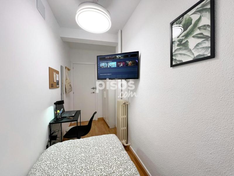 Características de la habitación: Habitación individual con medida de 5.69mtrs2. Cama individual de 90 cm. TV 32”. Armario. Espacio de trabajo, con escritorio y silla. Ventana exterior. Cerradura en la habitación. Piso de cinco habitaciones y un baño, ubicado en la primera planta (con ascensor). La cocina está equipada con todos los electrodomésticos, utensilios y menaje necesarios. El baño cuenta con espacio de almacenaje para tus enseres personales. Condiciones de Alquiler: DNI, NIE o Pasaporte. Mes corriente. Depósito de seguridad reembolsable (ciertas condiciones aplican). Se solicita un pago único al momento de la entrada, para gastos de gestión y mantenimiento (este importe puede variar según la temporada). Las habitaciones no incluyen: Ropa de cama, mantas o toallas. Horario de Check-in: Horario: 14:30 - 18:30 de lunes a viernes en la oficina del propietario. Los check-ins fuera del horario habitual, durante fines de semana y días festivos, son una excepción y sólo podrán realizarse si han sido autorizados previamente. Además, tendrán un cargo adicional de 30 euros. Por favor, consulta antes de planificar tu llegada en horarios distintos, puesto que no se garantiza la disponibilidad. Normas: No se permiten mascotas y está prohibido fumar. Los límites de edad establecidos para el alquiler son entre los 18 y 39 años. Transporte: - La estación de metro Quintana (Línea 5 del Metro) está a 3 minutos caminando y a 7 minutos caminando de la estación de metro Pueblo Nuevo (Líneas 5 y 7). - Metro directo a Ciudad Universitaria en menos de 30 minutos. - Paradas de autobús 38, “Las Rosas” y 146 “Los Molinos”, a 3 minutos caminando.