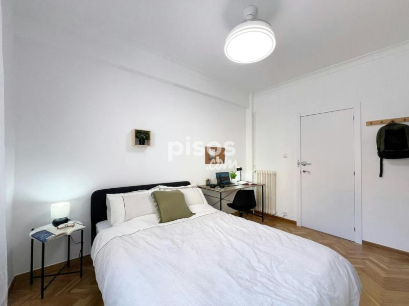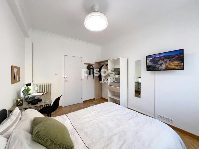 Características de la habitación: Habitación doble con medida de 10.42mtrs2. Acepta pareja. Cama matrimonial de 140 cm. Smart TV 32”. Armario doble. Espacio de trabajo, con escritorio y silla. Ventana exterior. Cerradura en la habitación. Piso de siete habitaciones y dos baños, ubicado en la segunda planta (con ascensor). La cocina está equipada con todos los electrodomésticos, utensilios y menaje necesarios. Los baños cuentan con espacio de almacenaje para tus enseres personales. Condiciones de Alquiler: DNI, NIE o Pasaporte. Mes corriente. Depósito de seguridad reembolsable (ciertas condiciones aplican). Se solicita un pago único al momento de la entrada, para gastos de gestión y mantenimiento (este importe puede variar según la temporada). Las habitaciones no incluyen: Ropa de cama, mantas o toallas. Horario de Check-in: Horario: 14:30 - 18:30 de lunes a viernes en la oficina del propietario. Los check-ins fuera del horario habitual, durante fines de semana y días festivos, son una excepción y sólo podrán realizarse si han sido autorizados previamente. Además, tendrán un cargo adicional de 30 euros. Por favor, consulta antes de planificar tu llegada en horarios distintos, puesto que no se garantiza la disponibilidad. Normas: No se permiten mascotas y está prohibido fumar. Los límites de edad establecidos para el alquiler son entre los 18 y 39 años. Transporte: - Tienes la Estación Príncipe Pío (Línea 6 y 10 del Metro) y la Estación de Metro Puerta del Ángel (Línea 6), a 15 minutos caminando. - Parada de los autobuses 36, 50 y 62 “Virgen del Puerto - Fósforo” a 2 minutos caminando.