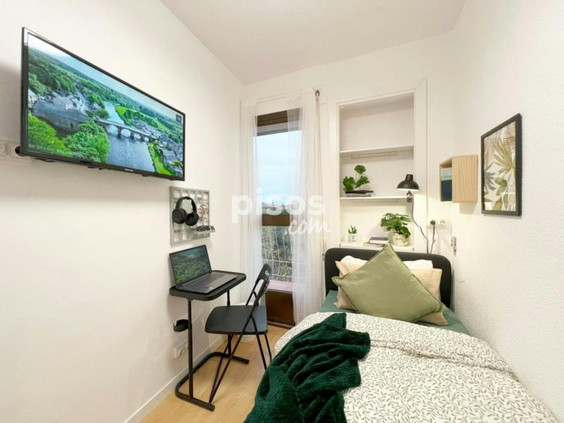 Habitación individual con medida de 4.9mtrs2. Cama individual de 90 cm. TV 32”. Armario. Espacio de trabajo, con escritorio y silla. Balcón. Cerradura en la habitación. Piso de cinco habitaciones y un baño, ubicado en la tercera planta (sin ascensor). La cocina está equipada con todos los electrodomésticos, utensilios y menaje necesarios. El baño cuenta con espacio de almacenaje para tus enseres personales. Condiciones de Alquiler: DNI, NIE o Pasaporte. Mes corriente. Depósito de seguridad reembolsable (ciertas condiciones aplican). Se solicita un pago único al momento de la entrada, para gastos de gestión y mantenimiento (este importe puede variar según la temporada). Las habitaciones no incluyen: Ropa de cama, mantas o toallas. Horario de Check-in: Horario: 14:30 - 18:30 de lunes a viernes en la oficina del propietario. Los check-ins fuera del horario habitual, durante fines de semana y días festivos, son una excepción y sólo podrán realizarse si han sido autorizados previamente. Además, tendrán un cargo adicional de 30 euros. Por favor, consulta antes de planificar tu llegada en horarios distintos, puesto que no se garantiza la disponibilidad. Normas: No se permiten mascotas y está prohibido fumar. Los límites de edad establecidos para el alquiler son entre los 18 y 39 años. Transporte: - Estación La Almudena a 2 minutos caminando (Línea 2 del Metro) y también encuentras las estaciones Ascao y García Noblejas de la línea 7 del metro, a 13 minutos caminando. - Metro directo a Ciudad Universitaria en menos de 30 minutos. - Paradas de los autobuses: 109 “Fernando Gabriel”, 106 “Avenida De Daroca - Arriaga” y 110 “Cementerio La Almudena” a 3 minutos caminando.