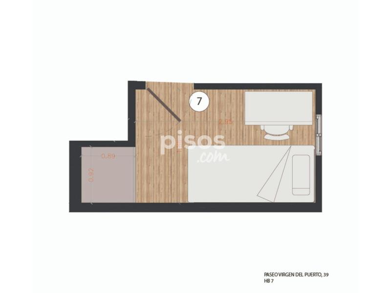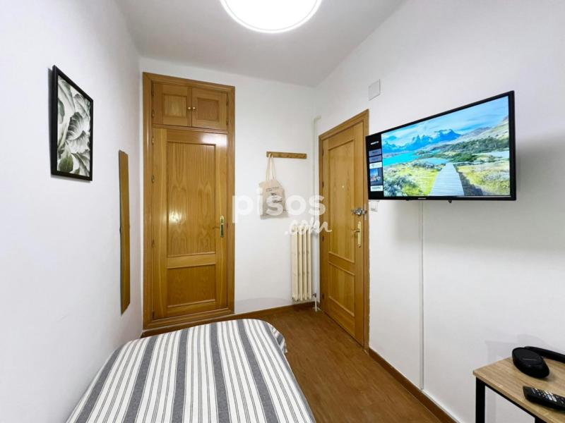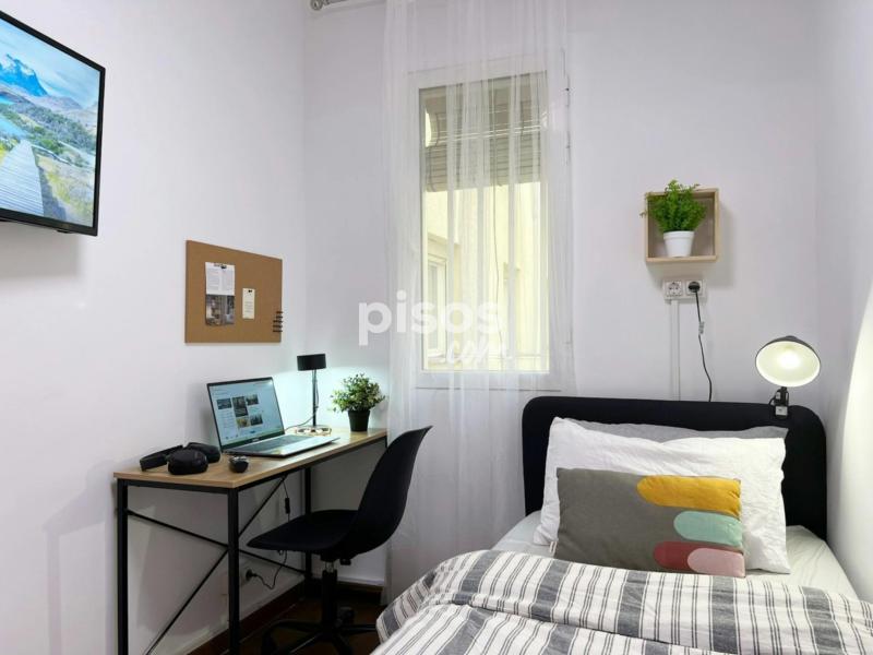 Características de la habitación: Habitación con medida de 5.48mtrs2. Cama individual de 90 cm. Smart TV 32”. Armario. Espacio de trabajo, con escritorio y silla. Ventana interior con vista al patio. Cerradura en la habitación. Piso de siete habitaciones y dos baños, ubicado en la segunda planta (con ascensor). La cocina está equipada con todos los electrodomésticos, utensilios y menaje necesarios. Los baños cuentan con espacio de almacenaje para tus enseres personales. Condiciones de Alquiler: DNI, NIE o Pasaporte. Mes corriente. Depósito de seguridad reembolsable (ciertas condiciones aplican). Se solicita un pago único al momento de la entrada, para gastos de gestión y mantenimiento (este importe puede variar según la temporada). Las habitaciones no incluyen: Ropa de cama, mantas o toallas. Horario de Check-in: Horario: 14:30 - 18:30 de lunes a viernes en la oficina del propietario. Los check-ins fuera del horario habitual, durante fines de semana y días festivos, son una excepción y sólo podrán realizarse si han sido autorizados previamente. Además, tendrán un cargo adicional de 30 euros. Por favor, consulta antes de planificar tu llegada en horarios distintos, puesto que no se garantiza la disponibilidad. Normas: No se permiten mascotas y está prohibido fumar. Los límites de edad establecidos para el alquiler son entre los 18 y 39 años. Transporte: - Tienes la Estación Príncipe Pío (Línea 6 y 10 del Metro) y la Estación de Metro Puerta del Ángel (Línea 6), a 15 minutos caminando. - Parada de los autobuses 36, 50 y 62 “Virgen del Puerto - Fósforo” a 2 minutos caminando.