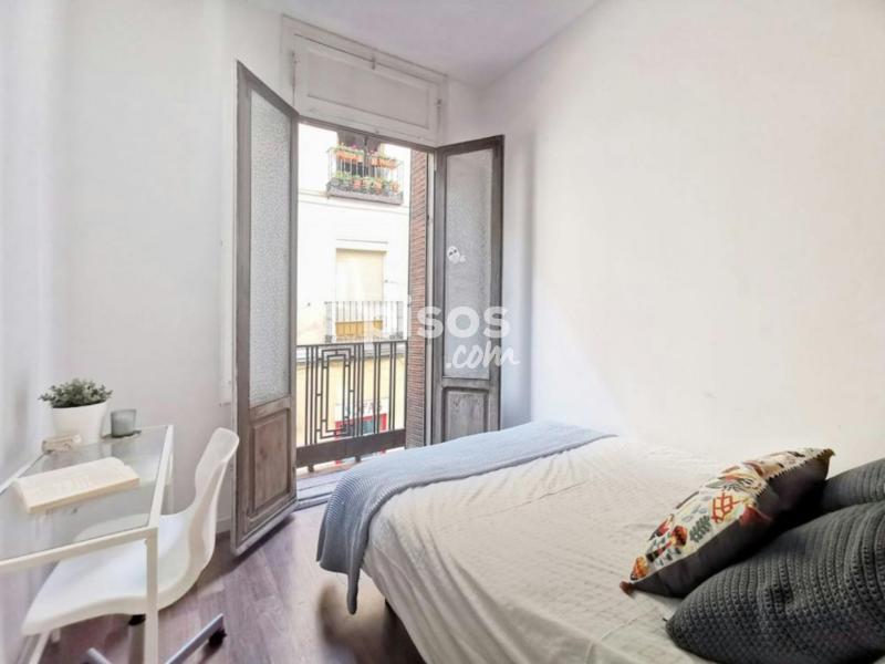 "Nice double room in Lavapiés, in Valencia Street. It''''s fully equipped with a double bed (135x190), a desk with a chair and a lamp and a wardrobe. It also has a luminous balcony. The room measures 8 m2, and it includes an electric heater and a door lock. It has everything young students and workers need to have a pleasant stay. *Bedding is not included, only a mattress cover is provided."
