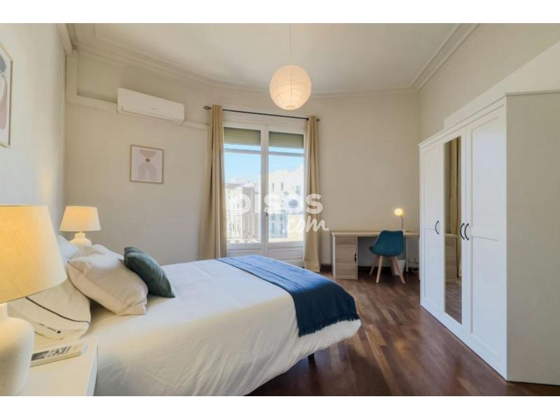 Welcome to this exceptionally spacious room in a 6-room apartment located in the heart of Barcelona. This room is a gem, offering a private balcony that overlooks the lively street, providing a perfect spot to soak in the city atmosphere.