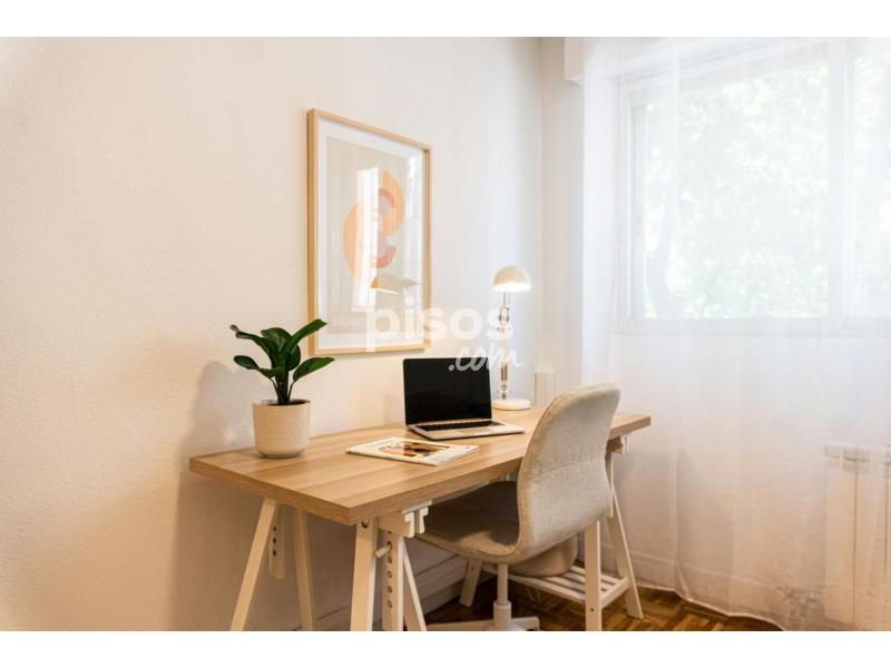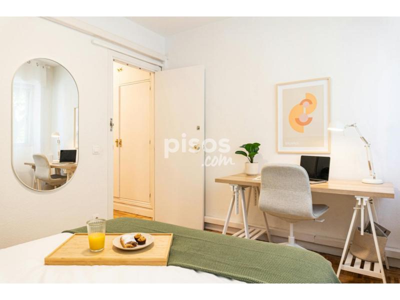 ?????? Welcome to your private room in Madrid! Your room offers a comfortable double bed, ideal for a restful night''''s sleep. A spacious desk provides the perfect spot for work or study, while the closet offers ample storage space for your belongings. Relax and unwind in your own personal retreat. Please note, there are 3 bathrooms and you will share one with one other roomate. Common Areas: Our apartment boasts inviting common areas designed for relaxation and socializing. In the living room, sink into the plush sofa and catch up on your favorite TV shows. Enjoy meals or gather for lively conversations around the dining table. Stay cool and comfortable with air conditioning throughout the apartment. Additionally, you''''ll have access to a fully equipped kitchen featuring an oven, microwave, fridge, washing machine, and dishwasher, providing everything you need for meal preparation and laundry needs. Neighborhood: Situated on Calle del Comercio in Madrid, our apartment is nestled in a dynamic neighborhood with plenty of charm. Explore nearby cafes, restaurants, and shops, immersing yourself in the local culture. With convenient access to public transportation options such as buses and metro stations, you can easily explore all that Madrid has to offer. Experience the vibrant atmosphere of Madrid living from our centrally located apartment, where everything you need for a comfortable stay has been provided. ??Weekly cleaning for the room and common areas is included in the rent. ??Utility costs are included up to 50€. ??????