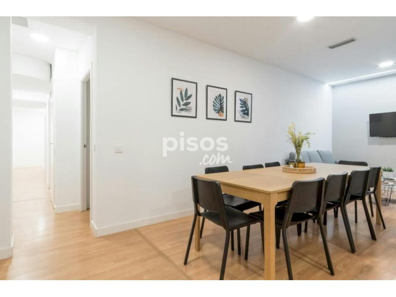Recently renovated apartment on Calle Alejandro Gonzalez, located very close to the Plaza de Toros. It has 11 rooms, 4 bathrooms, a living room with a flat-screen TV, a smaller living area, a dining room and a fully equipped kitchen with three refrigerators, two kitchens, two sinks, an oven, a microwave and two separate laundry rooms. The area of Ventas is a very traditional area of Madrid where the Plaza de Toros stands out with a spectacular Mudejar-inspired style that also houses a museum. In the area there are many bars and taverns where you can have a vermouth and tapas, and also has two important green areas such as the Maria Eva Duarte Peron Park and the Quinta de la Fuente del Berro Park. Public transport here has very good connections, there is the Ventas and Manuel Becerra subway line 2 of the metro, plus several bus lines. It doesn''''t have the hustle and bustle and noise of the neighborhoods closer to Madrid center, but its good communications make it easy to access. In fact, it has a privileged location, with almost immediate access to three of the most important arteries of the city (Alcalá, M-30, Avenida de América). You have two subway stations near the apartment, they belong to line 2 of the Madrid subway: -Ventas -Manuel Becerra We recommend you to visit the most important points near your apartment: - The traditional Guindalera market - Plaza de Toros -Bullfighting Museum -Maria Eva Duarte Peron Park - Quinta de la Fuente del Berro Park -Torrespaña (El Pirulí) -El Retiro Park - Don''''t smoke - Pets are not allowed - Parties are forbidden - Take out the trash daily - Short-term visits are allowed - (hidden) informs that in this flat a device has been installed in order to allow the monitoring of the noise level (decibels) 24 hours a day. The system emits an alert whenever the sound level exceeds the maximum allowed by the Community of Madrid, mainly between 11pm and 6am Spacious room in Alejandro González, Madrid Spacious room in the heart of Madrid, next to Las Ventas bullring. With everything essential, such as a double bed of 135cm , a wardrobe and a desk with a lamp. It''''s perfect if you are looking to feel like home. The room measures 12.67 m2, it has a door lock and electric heating. *Bedding is not included, only a matress cover is provided.