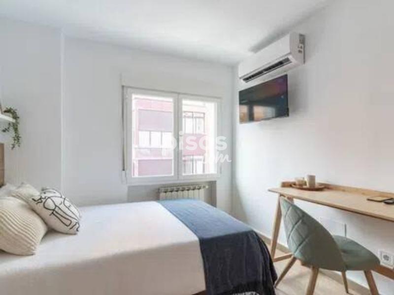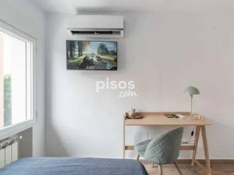 Disponible ahora mismo - NO SE COBRAN GASTOS DE AGENCIA - Agradable y amplia habitación en de 9,90m2 incluyendo baño privado en suite. Habitación con gran ventanal a la calle y muy luminosa. Situada a 5 minutos del metro de Oporto, línea directa a la estación de Ciudad Universitaria y al centro de Madrid. La habitación está equipada con todo lo necesario para disfrutar de tu estancia. Cuenta con una cama doble (120 cm), un amplio armario, un escritorio con silla, una estantería y una lámpara en el escritorio. También tiene aire acondicionado individual con termostato y mando. Dispone de televisión SmartTV. Calefacción. La vivienda tiene cinco habitaciones, todas con baño privado, agua caliente por caldera, lavadora y un comedor con cocina integrada en un espacio abierto. Está completamente equipado para que disfrutes de tu estancia en Madrid, incluyendo aire acondicionado en todas las habitaciones y en las áreas comunes del apartamento. La cocina está totalmente equipada con 2 refrigeradores, calefacción, aire acondicionado, horno, lavadora, microondas y una mesa de comedor con Smart TV para disponer de todas las comodidades. Para reservar se pide un mes de depósito y el mes de alquiler en curso (esto incluye servicio de internet, servicio de limpieza de zonas comunes una vez por semana, servicio de mantenimiento y servicio de guardia telefónica al inquilino durante los fines de semana) ¿Quieres hacer una visita? ¿Tienes alguna duda? ¡Contáctanos! **Los suministros de electricidad, gas y agua se pagan aparte según facturas, se dividen de forma equitativa entre todos los inquilinos del piso. *La ropa de cama no está incluida, solo se proporciona el cubre colchón con un costo de 10€.