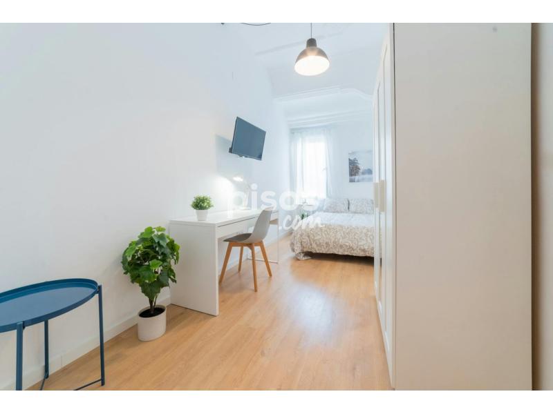 Características de la habitación: - Habitación privada: La habitación cuenta con llave propia - Cama: Está equipada con cama doble y 1 set de ropa de cama, almohada y colcha - Espacio de trabajo: Mesa de estudio y una silla cómoda ideal para largas horas de trabajo o estudio. - Almacenamiento: Armario - Otros: TV - Ventana: Exterior Requisitos para alquilar: - Ocupación: Estar trabajando (con contrato de trabajo indefinido) o estudiando (con avalista). Documentación necesaria: Si tienes contrato laboral: - Documento de identidad - Contrato de trabajo indefinido en PDF con firma del trabajador - Últimas 3 nóminas - Vida laboral actualizada Si eres autónomo: - Última declaración de la renta - Último pago de autónomo - Vida laboral actualizada - Últimos 3 meses de estados de cuenta bancarios *Duración del alquiler: Mínimo 4 meses, máximo 11 meses (se puede hacer uno nuevo después). - Gastos: 60€ / mes extra por gastos comunes POR PERSONA. - Depósito: Un mes de fianza. - Tasa de salida: 50€ - Gastos administrativos: 50% de una mensualidad (pago único al entrar). Habitación luminosa en el corazón de Valencia Ubicación: A solo 3 minutos de Ángel Guimerá y 5 minutos de Plaza de España. Excelente conexión con transporte público: metro y autobús a poca distancia. Características destacadas del piso: - Limpieza: Limpieza de zonas comunes incluida dos veces al mes. - Mantenimiento: Nos encargamos del mantenimiento del piso. - Conectividad: Internet de alta velocidad. - Totalmente equipado: El piso está totalmente amoblado y equipado, incluyendo una cocina con todos los electrodomésticos y utensilios necesarios. - Vecindario: Situado en un vecindario tranquilo y seguro en pleno centro, rodeado de servicios como supermercados, bancos, tiendas y restaurantes. - Zonas comunes: El apartamento dispone de amplias zonas comunes, perfectas para relajarse y socializar. - Duración del alquiler: Mínimo 4 meses, máximo 11 meses.