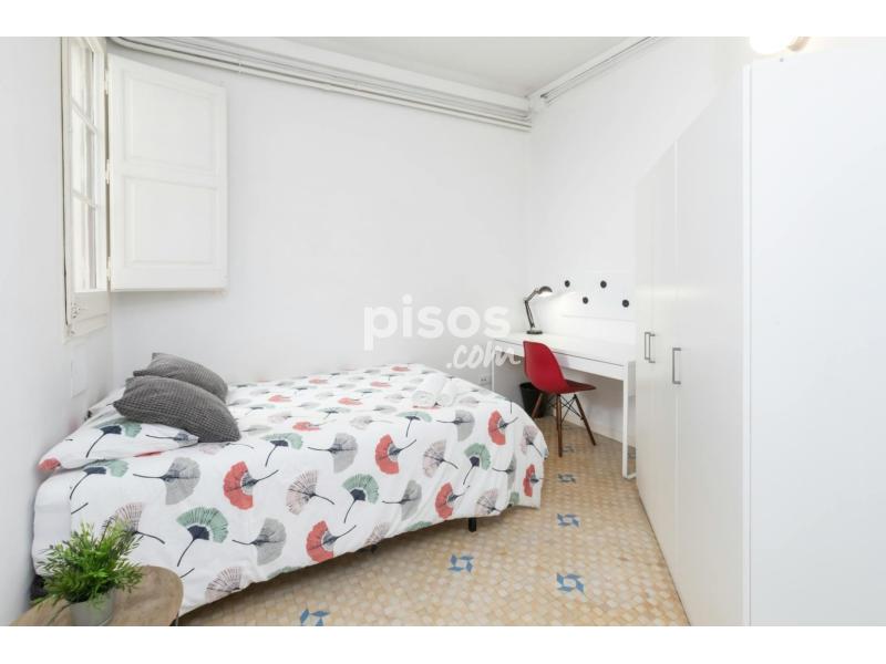 Medium size room with a double bed, quiet and fully equipped. Window facing an interior patio. This room is situated next to the entrance hall of the apartment and far from the living and kitchen areas.