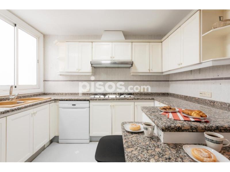 La cocina viene completamente equipada para que no necesites comprar nada, además de lavadora, frigorífico, lavavajillas, microondas y horno.