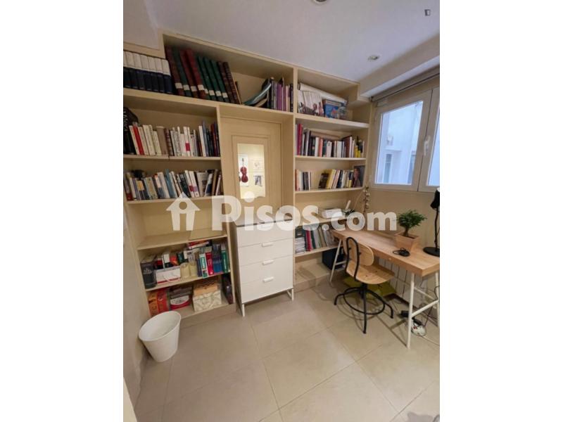 Pequeño y acogedor despacho, con sofa cama, mesa de trabajo y estanterias.