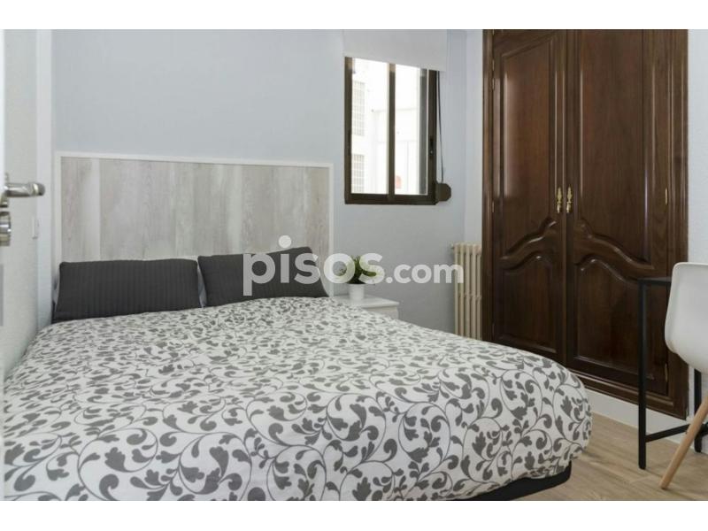 "Nice double room in Madrid, located very close to the centre. The room is furnished with a double bed (135x190), a bedside table, a built-in wardrobe and a desk with a chair and a lamp. It has a window overlooking the countryard. The size of the room is 7.54 m2, ideal for young students and workers. It includes a door lock. *Bedding is not included, only a mattress cover is provided."