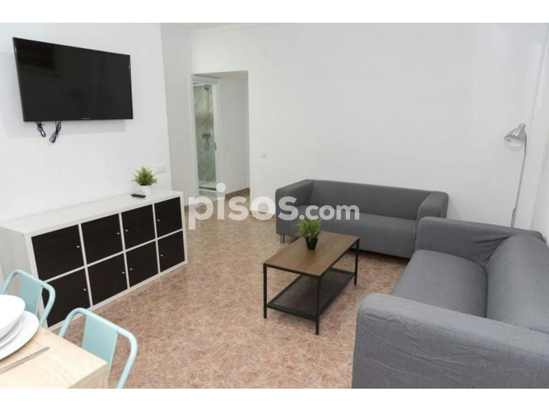 Modern flat in Paseo de los Pontones Street , located in one of the most privileged neighborhoods of Madrid, Imperial. It has 8 bedrooms and 2 bathroom, and also a fully furnished living room type kitchen with flat TV. The kitchen has a fridge, a microwave, oven, washing machine, pans and cutlery.