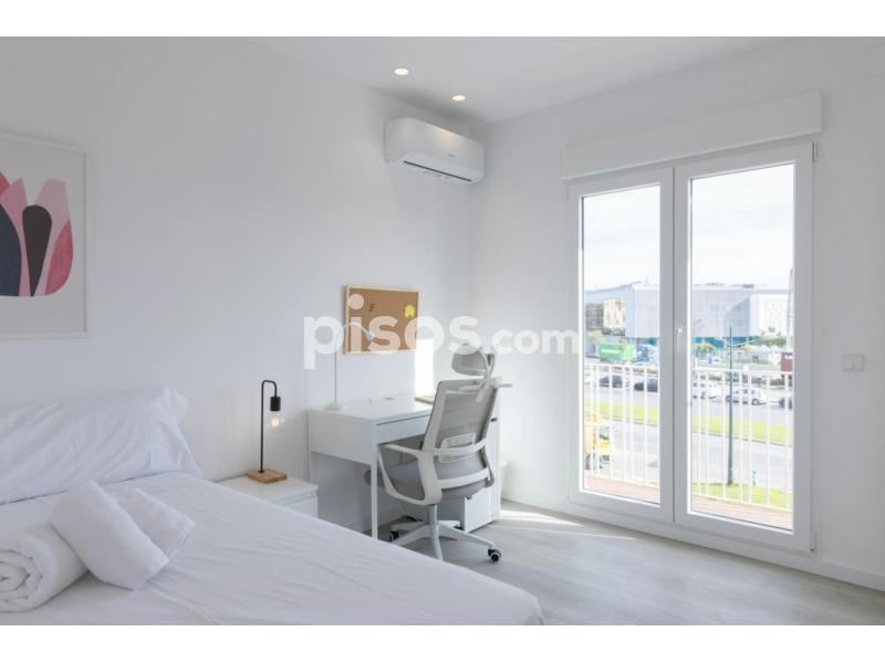 Rooms for rent in a shared flat for young professionals and students. Located in a quiet area of Valencia, the flat offers an ideal environment to concentrate and work. Enjoy all the comforts of home without giving up your independence. Enjoy views of the port and live a unique experience in the city. The flat offers six furnished bedrooms, a fully equipped kitchen and three shared bathrooms. Each room has a single bed, desk and wardrobe. One month deposit is required. There are no management fees or charges. Registration is not permitted. Pets are not allowed.