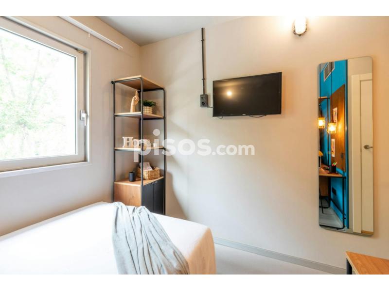 The Single En-suite is room of 12 square meters approximately furnished with a 135 cm bed, wardrobe with hangers and storage shelves, flat screen TV and a study area with desk and chair. The room is equipped with a practical thermostat to manage heating and cooling. The private bathroom measures approximately 2 square meters and is equipped with a comfortable shower.