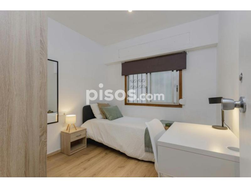 Cozy interior single room in Valencia, located on Palleter Street. It comes equipped with a 90x190 cm single bed, an individual wardrobe, a desk with a lamp, and a door lock.
