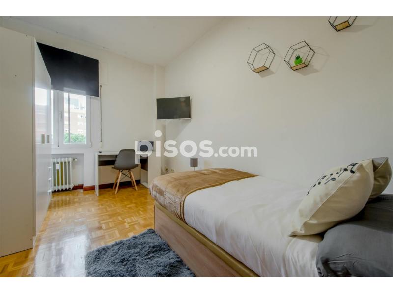?????? This bedroom comes with: ?Exterior window ??Type of bed: 105x190 cm We present you a comfortable room in Paseo de la Castellana. The property consists of: 3 full bathrooms (1 of them private), large fully equipped kitchen-dining room (2 fridges, oven, microwave, vitroceramic hob, utensils) and 8 large bedrooms. The bedroom has double bed with canapé, mirror, wardrobe, desk, smart tv so you can enjoy your favourite channels and streaming platforms and a spectacular view to the street. The price includes: - Maintenance technician - Contract management - Cleaning of the common areas once a week - Flexibility of contracts - Rooms with high quality standards - Lockable door - Customer service - All utilities included (water, electricity, gas and wifi) - Kitchen utensils. Unbeatable location close to the Plaza de Castilla interchange, with many bus lines and Metro Lines 1, 9 and 10, close to the Cuatro Torres Business Area of Madrid, the RENFE (train) of Chamartín, supermarkets and shops; all together with a spectacular social and cultural life in the whole area. We are waiting for you! ??Administration fee must be paid by cash (Other types of payments, please contact us) ??Profile: 18-35 years (older ages may be accepted case by case) ??A weekly cleaning in common areas is included in the price. ??????