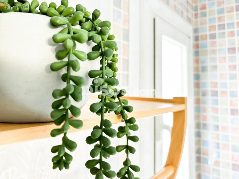 Esta preciosa vivienda totalmente reformada cuenta con COCINA completamente equipada (horno, nevera, fogones, campana extractora, lavadora y menaje, compuesto de platos, vasos, cubiertos y ollas). Tiene 1 BAÑO completo reformado con ducha. Un gran salón comedor donde poder relajarse