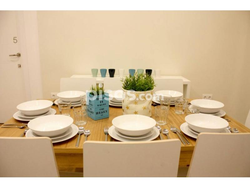 Spacious flat in Madrid, in Puerta de Alcalá, next to Retiro Park. The flat has 8 rooms and 2 complete bathrooms. It has a living room equipped with 2 sofas, a small desk and flat TV. It also has a dinning room and a fully equipped kitchen with 2 fridges, oven, stove, 2 washing machines and microwave. It ´s located in the perfect area for young students and workers. They will have all the amenities nearby, and above all, good public transport with the Atocha metro.
