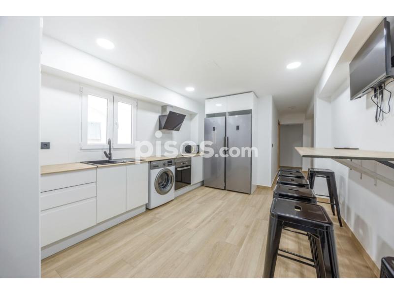 The flat is 170m2 and has 7 bedrooms and 2 bathrooms. The common areas are really nice, with a fully equipped kitchen with: