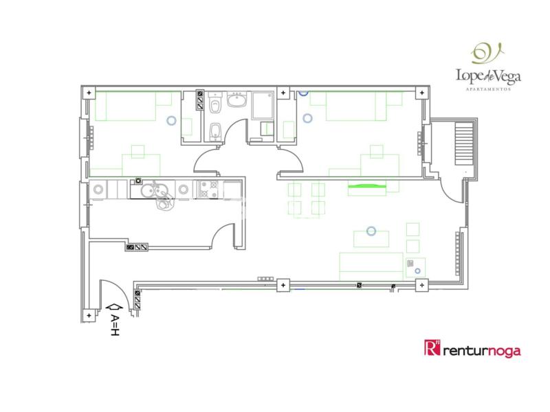 Amplio y confortable piso totalmente amueblado en Edificio Lope de Vega, con 2 dormitorios, baño completo, amplio salón-comedor, cocina con lavadero y terraza.