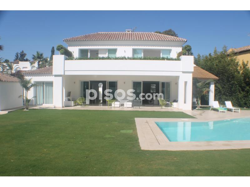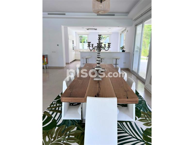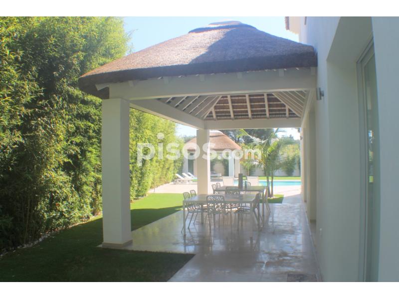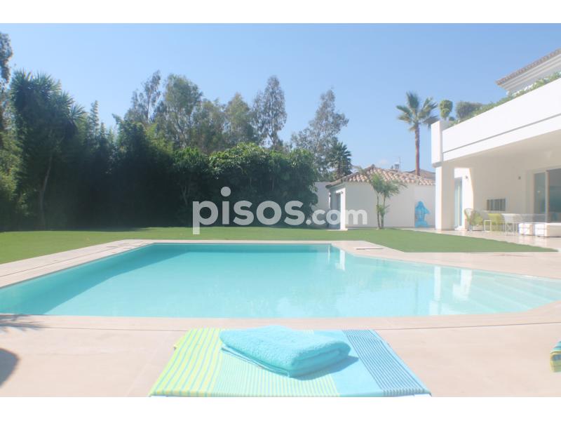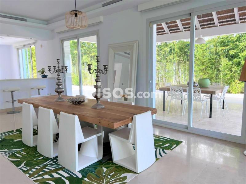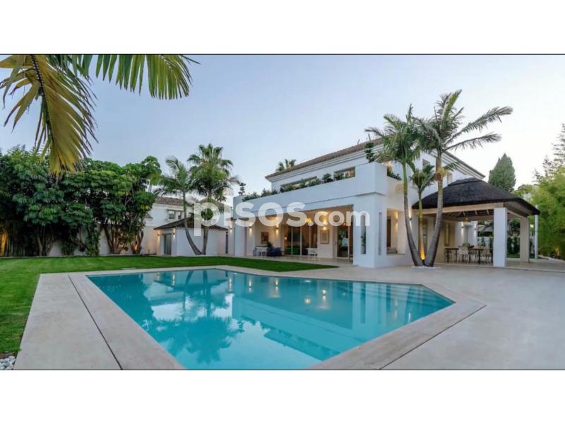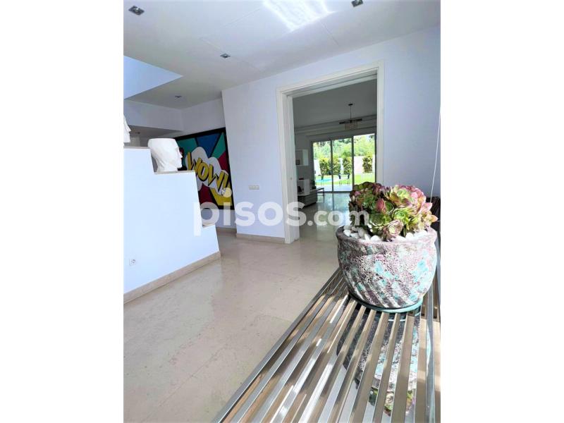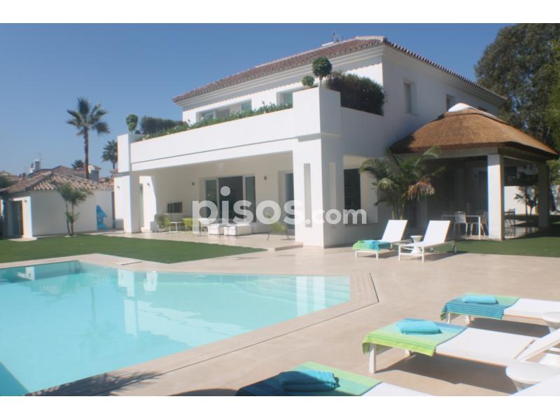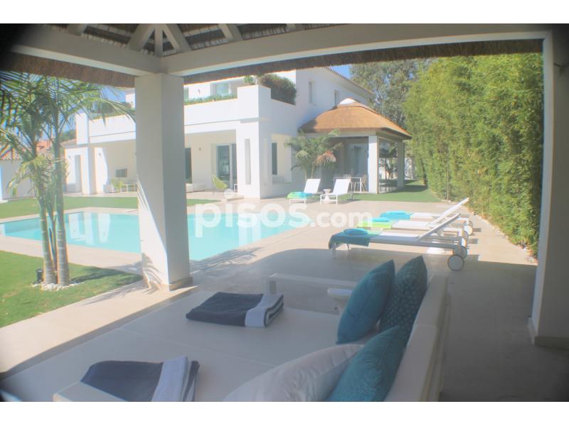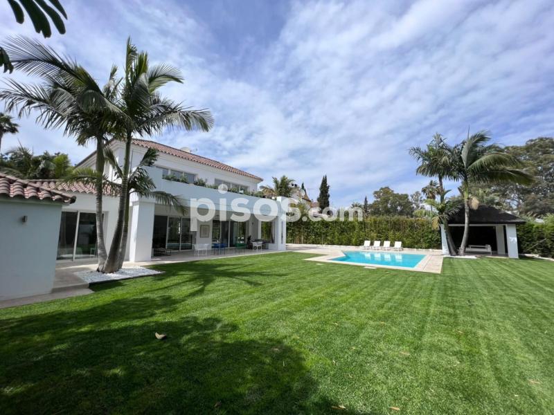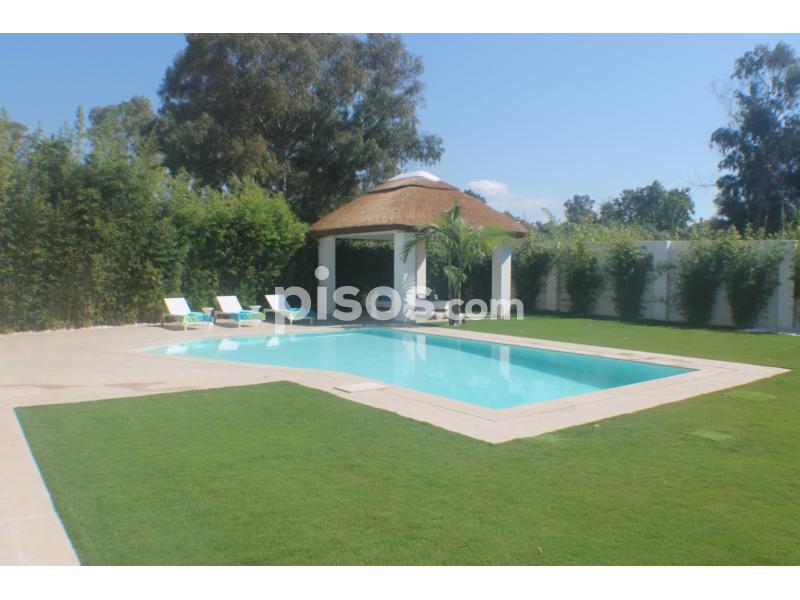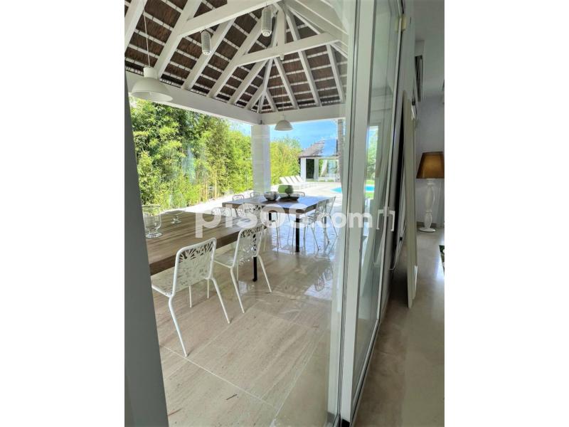 Propiedad de 5 habitaciones amplias una de ellas separada de la casa principal, amplísimo salon con cocina Americana y con 2 porches, uno de comedor y otro salón de verano. Maravilloso jardin con Pégola de piscina, Con Parking techado para 2 coches. Zona bien comunicada, con servicios cómo campos de golf, Club de Padel, etc. a 10 minutos andando a la playa. ''