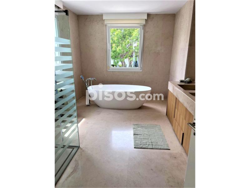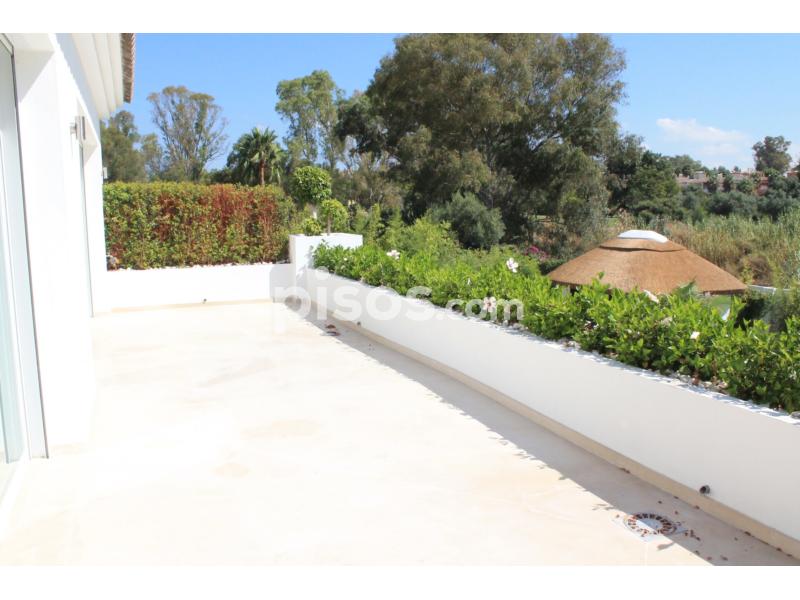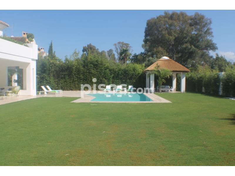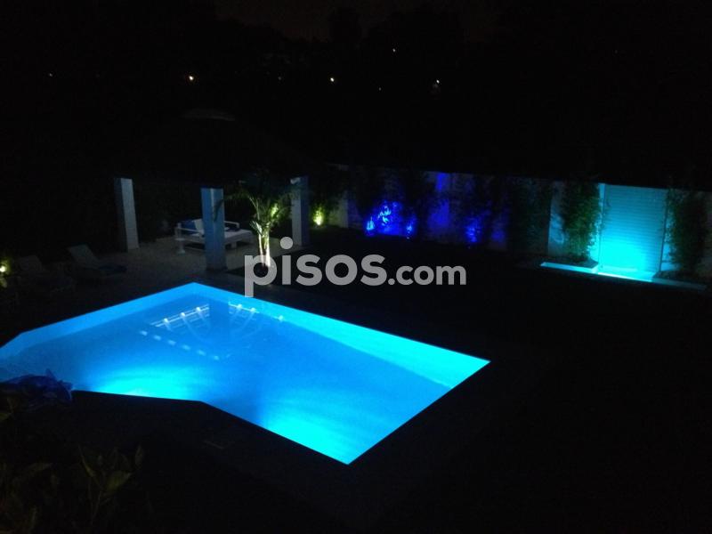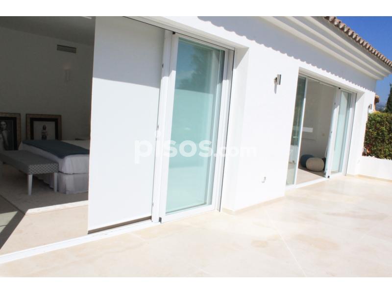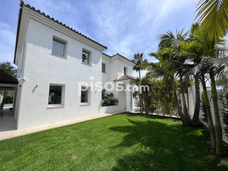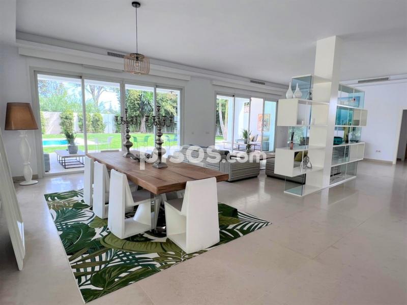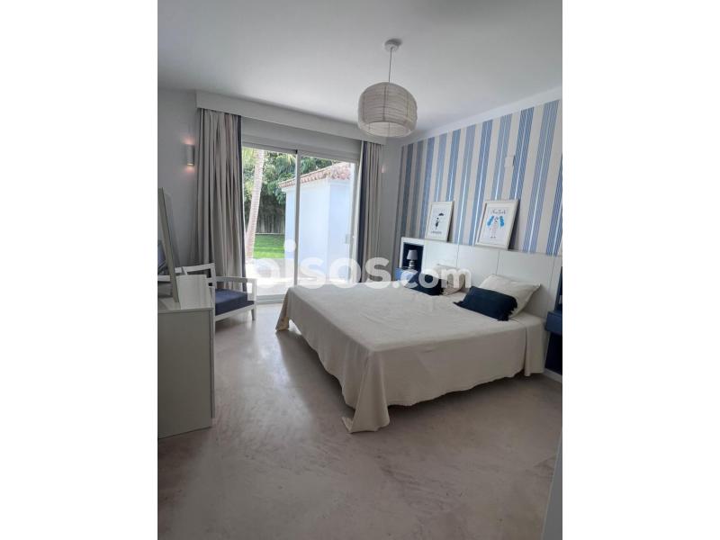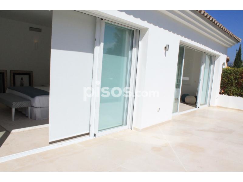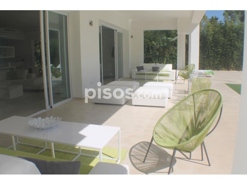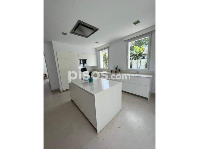 Propiedad de 5 habitaciones amplias una de ellas separada de la casa principal, amplísimo salon con cocina Americana y con 2 porches, uno de comedor y otro salón de verano. Maravilloso jardin con Pégola de piscina, Con Parking techado para 2 coches. Zona bien comunicada, con servicios cómo campos de golf, Club de Padel, etc. a 10 minutos andando a la playa. ''