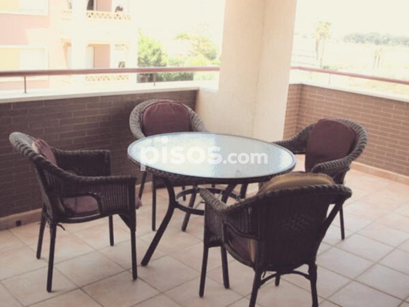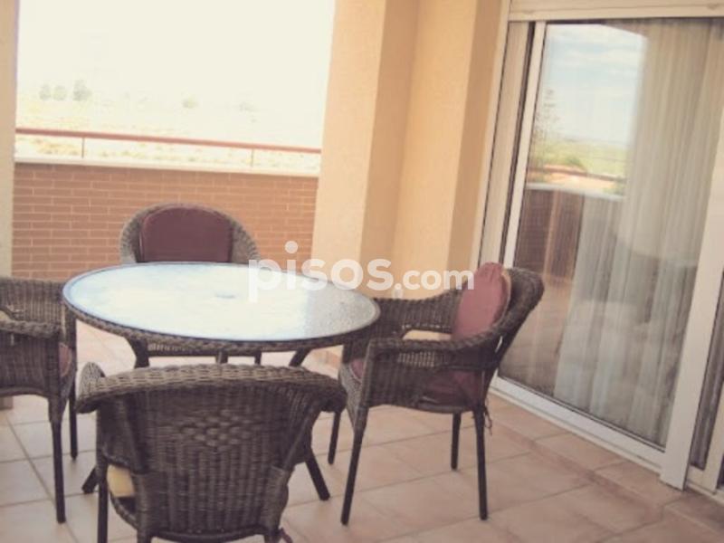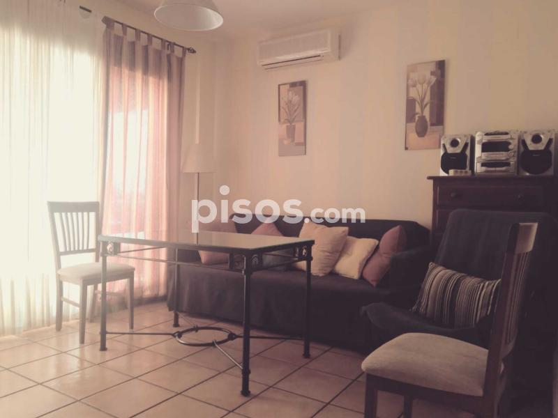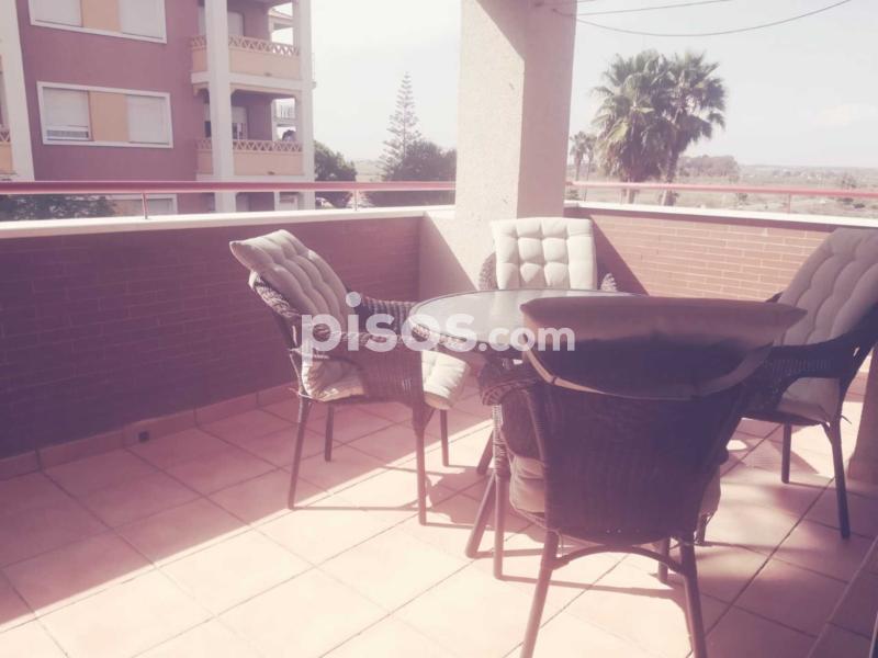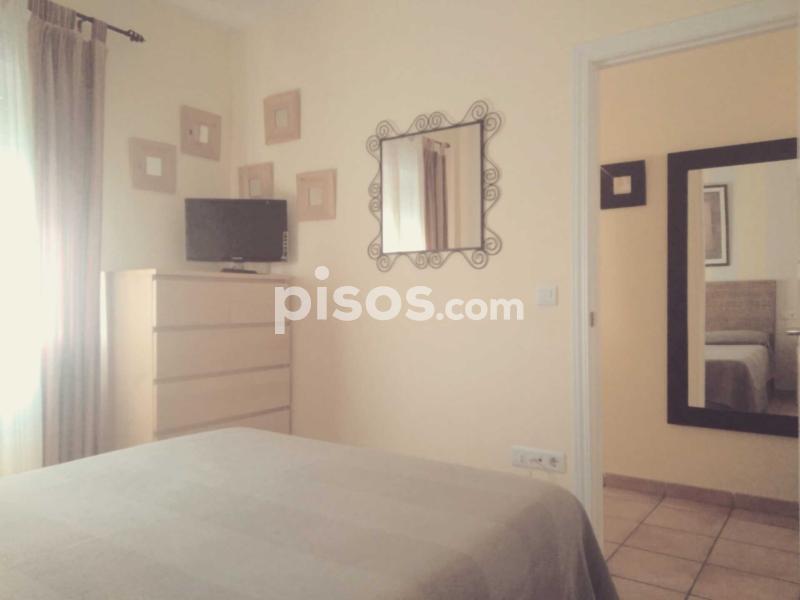 Tiene aproximadamente 60m2 de vivienda y 20 m2 de terraza. Es una 2ª planta y está situado haciendo esquina en el edificio, por lo que goza de un lateral sin vecinos, es mucho más fresco (nunca hemos puesto el A/A) y además le pertenece plaza de garaje subterránea.
