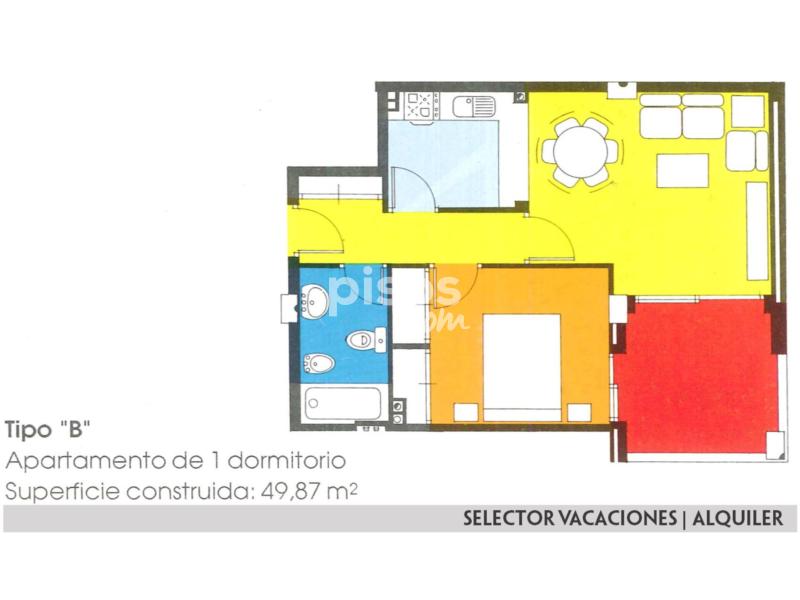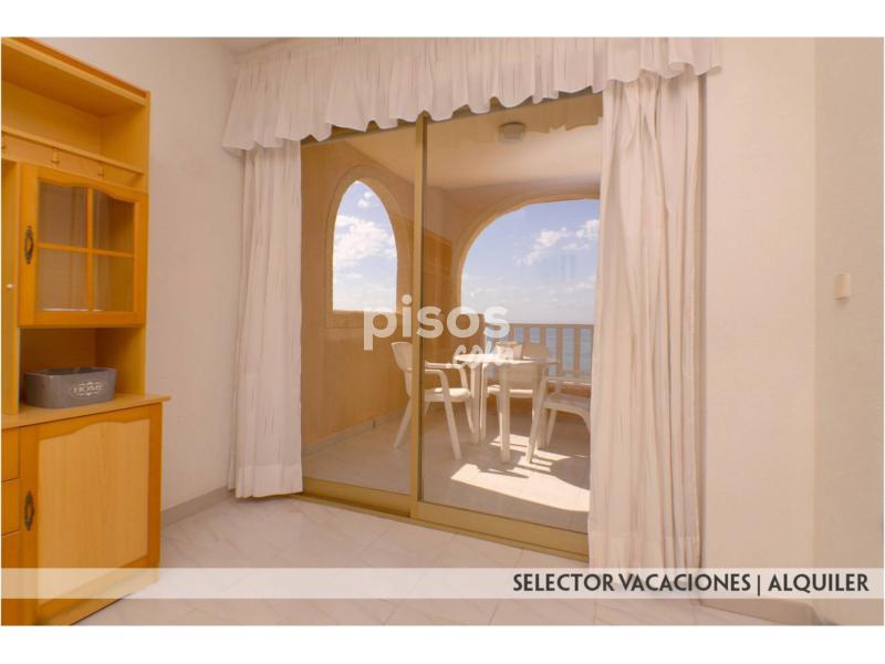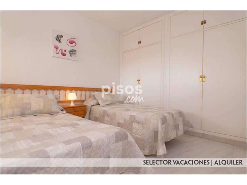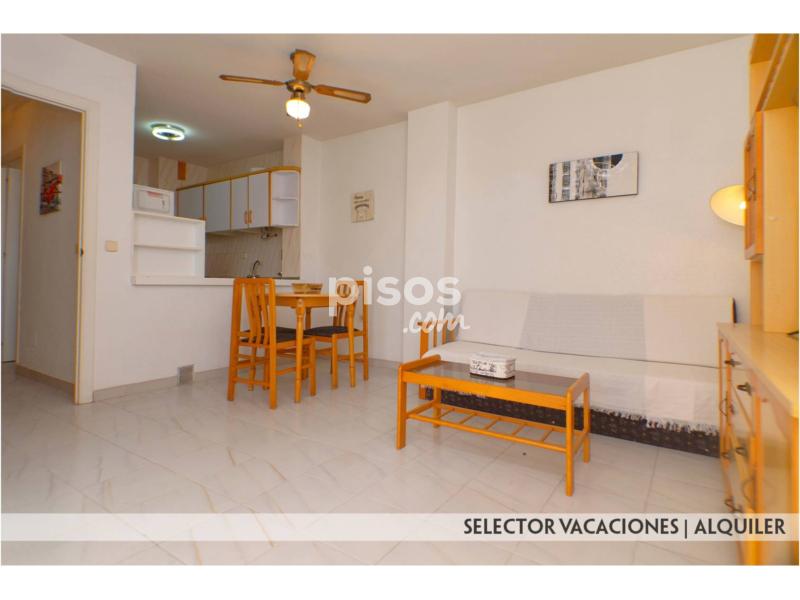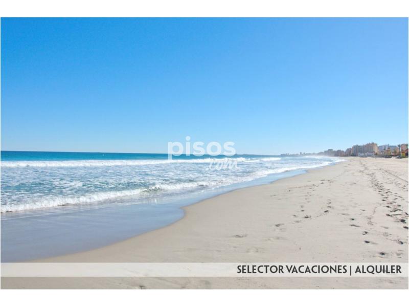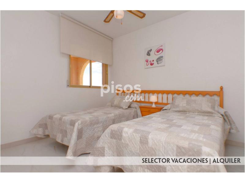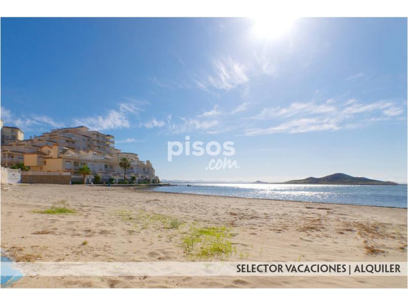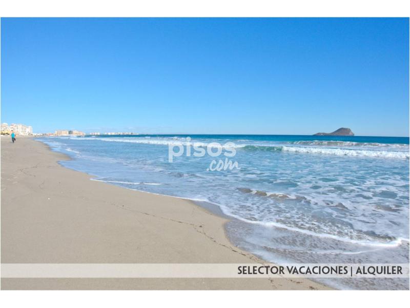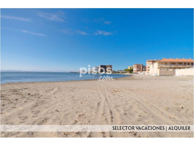 Este apartamento consta de 1 dormitorio con 2 camas de 90, salón comedor con sofá cama, cocina con barra americana, cuarto de baño completo y terraza con espectaculares vistas al mar. Se encuentra equipado con menaje, ropa de cama y toallas, lavadora, TV.. . Distancia a Playa Mediterráneo 250 mts. y 1ª línea Mar Menor.