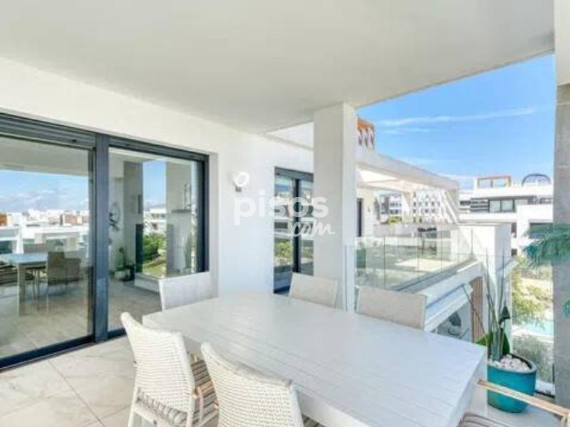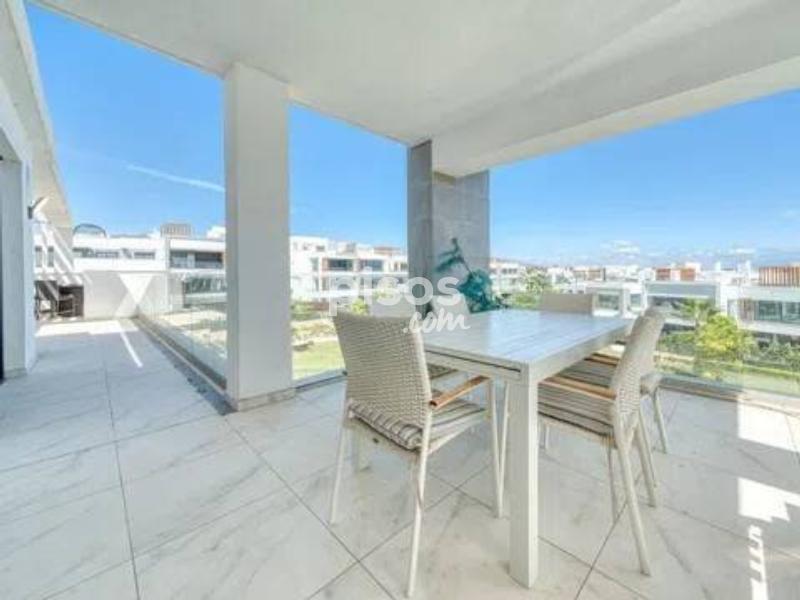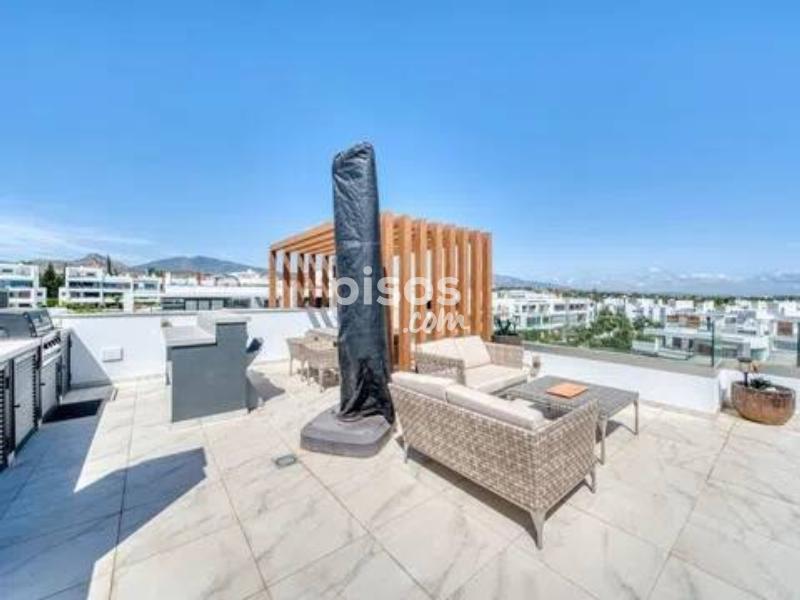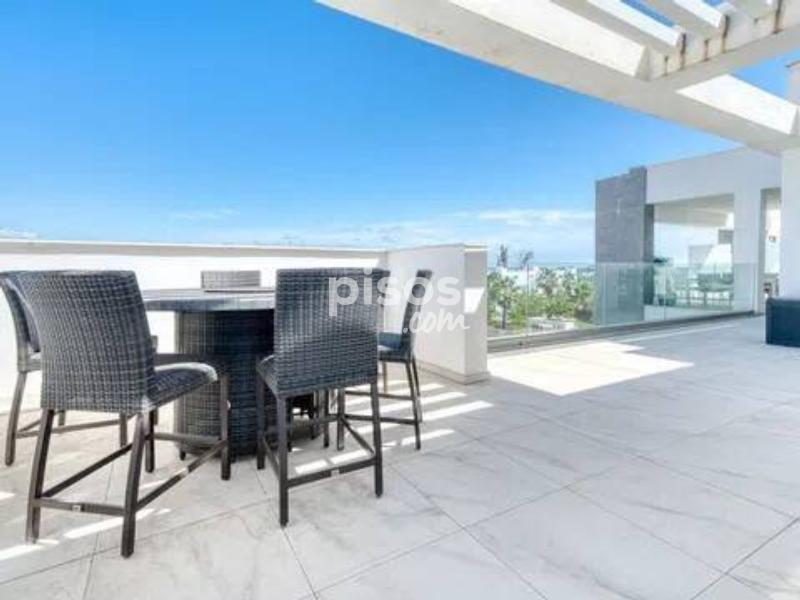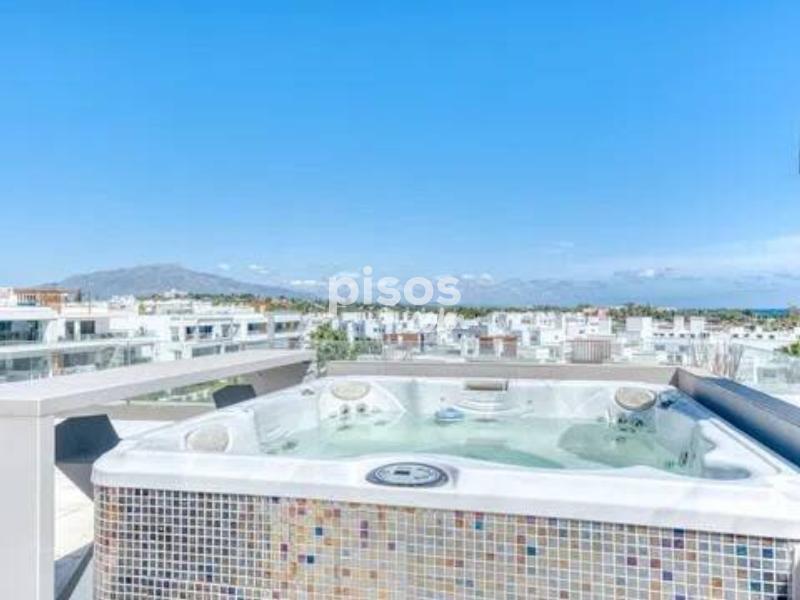 Ático de Lujo en Alquiler de Larga Temporada - Estepona, Costa del Sol Descubre un estilo de vida exclusivo junto al mar en este elegante ático de 3 dormitorios y 2 baños, ubicado en una de las zonas más demandadas de Estepona, a pocos minutos de la playa, comercios y colegios internacionales. Con 124 m² interiores y una espectacular terraza privada de 100 m², la vivienda ofrece impresionantes vistas panorámicas al mar, las montañas, el puerto deportivo y los jardines de la urbanización. Está totalmente amueblada y en perfecto estado, con acabados de alta calidad: cocina equipada, suelos de mármol, aire acondicionado, calefacción central y ventanas con doble acristalamiento. El espacio exterior se convierte en un oasis privado con solárium, jacuzzi y zona de barbacoa, ideal para relajarse o recibir invitados. Además, el complejo cerrado cuenta con piscina comunitaria, jardines, videovigilancia, sistema de alarma y caja fuerte. La propiedad incluye varias opciones de aparcamiento: subterráneo, cubierto, privado y en la calle. Una oportunidad excepcional para quienes buscan amplitud, comodidad y estilo en la Costa del Sol. ? Contáctanos hoy y agenda tu visita.