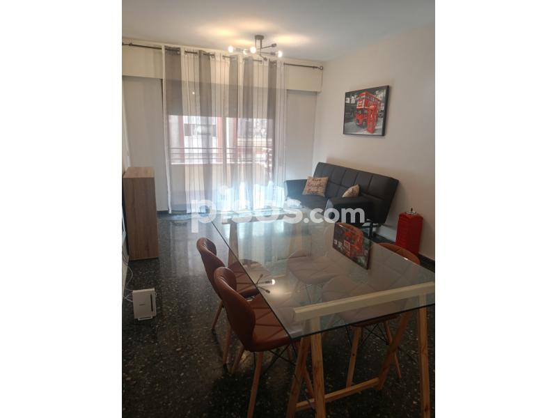Se ofrece en alquiler un piso ubicado en la tercera planta de un edificio con ascensor. La vivienda tiene una superficie construida de 140 m² y útil de 120 m², distribuida en tres habitaciones y dos baños, con una orientación sur que proporciona luminosidad constante y ambiente exterior. El inmueble se encuentra en buen estado, con una antigüedad de entre 20 y 30 años, suelos de terrazo, carpintería exterior de aluminio y está amueblado con armarios empotrados en dos de sus habitaciones. La cocina está completamente equipada y cuenta con calefacción eléctrica para el confort en temporadas frías.