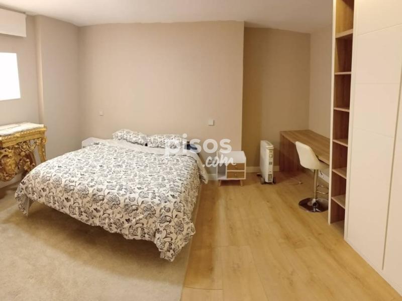 Por medio de una escalera de dos tramos se accede a la planta baja donde se encuentra el dormitorio con 3 cuerpos de armario, uno de ellos abierto con baldas, todos vestidos, y mesa de escritorio. El pasillo cuenta con otros tres cuerpos de armario, uno también abierto con baldas y enfrente el hueco de la escalera ofrece un buen espacio para trastero. El baño, con ventana a patio de ventilación, cuenta con doble lavabo, ducha y calefactor-toallero.