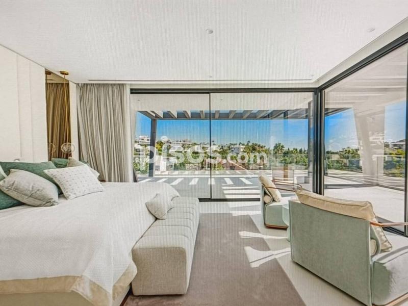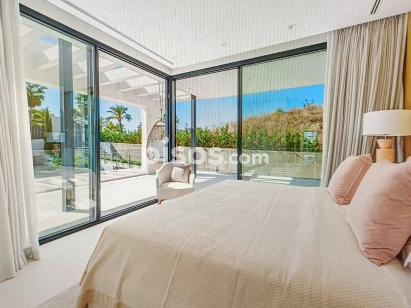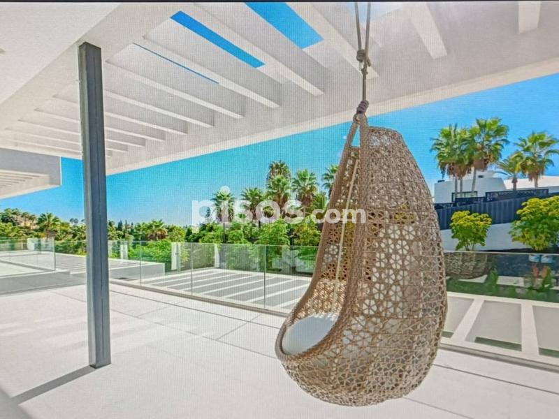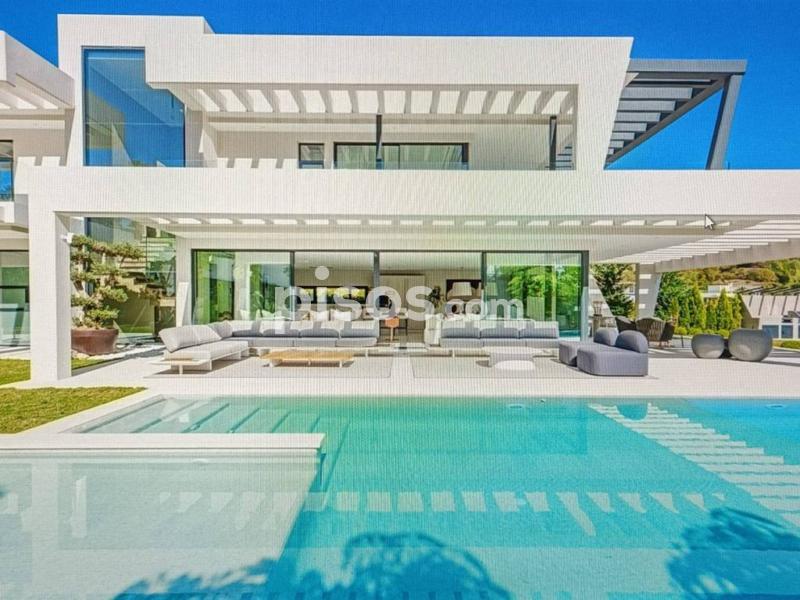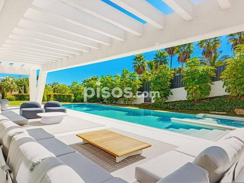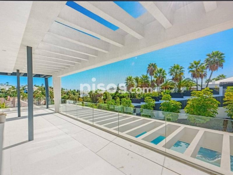 Villa espectacular en Nueva Andalucía a 5 km de puerto Banus , muy luminosa y con un gran estilo en su decoración con colores cálidos cuidando los detalles , consta de 6 dormitorios en suite, el principal con vestidor y sala de estar , 5 baños , un amplio salón con comedor y cocina totalmente equipada , la propiedad dispone de un sistema de domótica con el que se puede controlar cortinas , luces , música , alarma , etc , dispone también de un sótano en el que hay una sala de tv, lavadero , gym, baño turco, trastero y un espacio para el servicio con cocina y baño . Esta propiedad tiene una parcela de 1420 m donde disfrutar de un magnifico jardín con barbacoa y piscina de agua salada y un garaje para 5 coches .