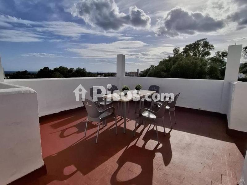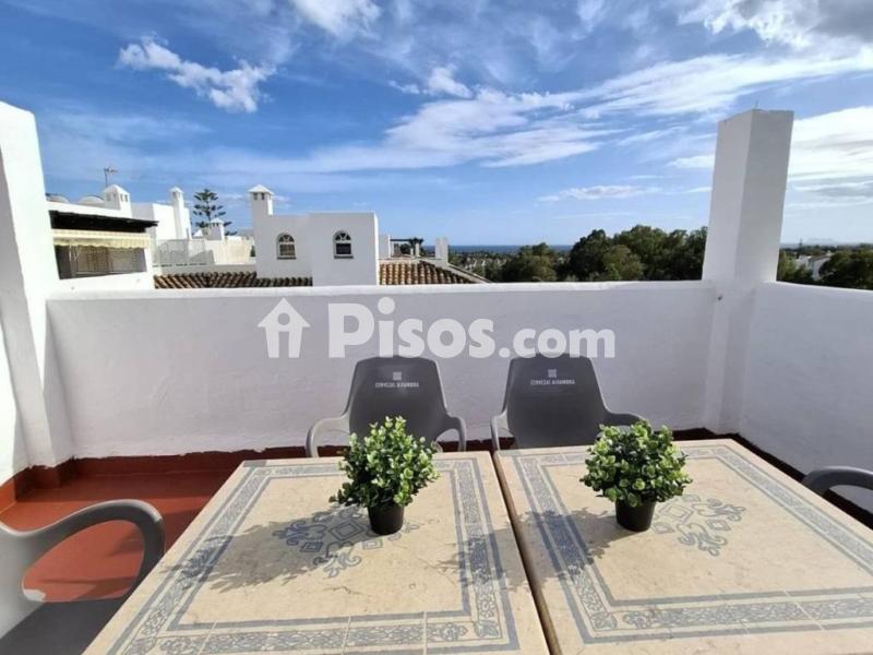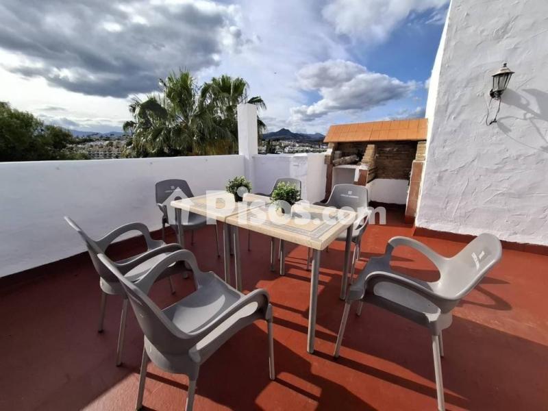 Se alquila larga temporada piso ático duplex en Estepona, amplio piso con vistas al mar y barbacoa.