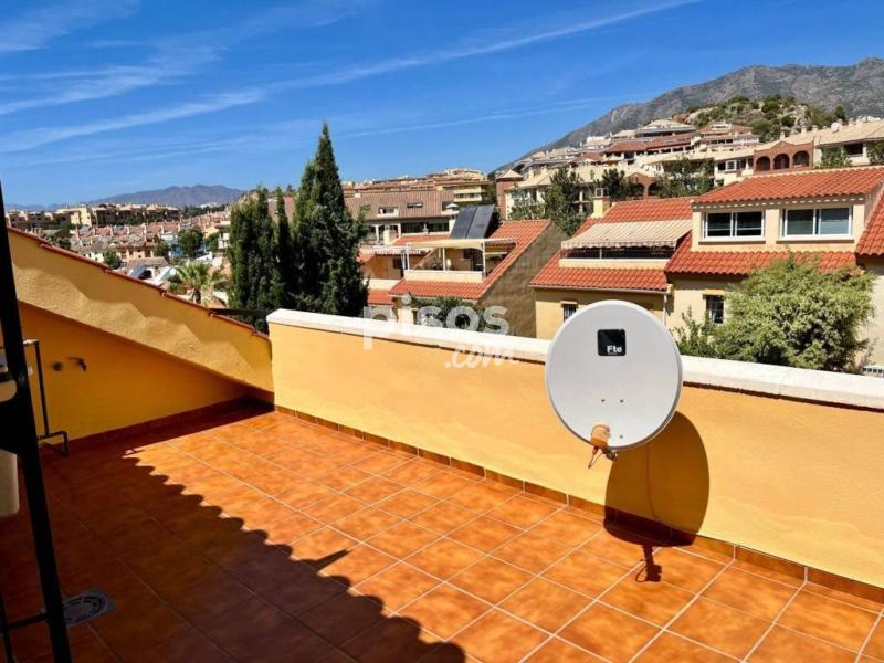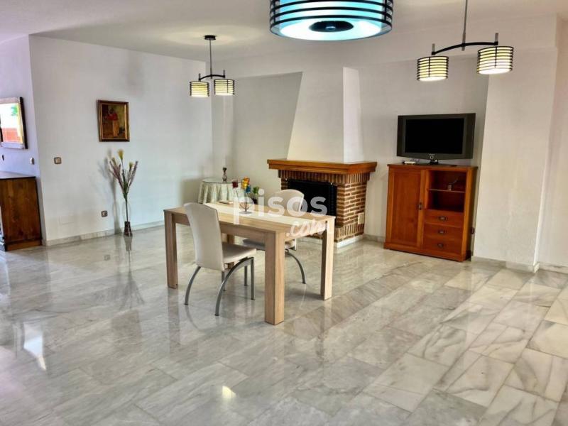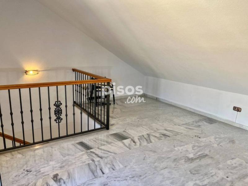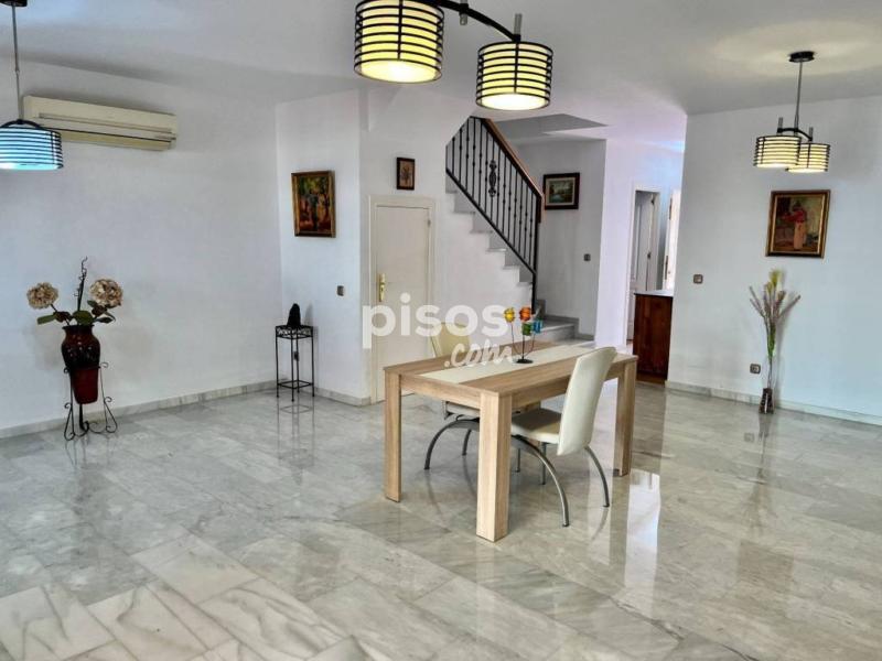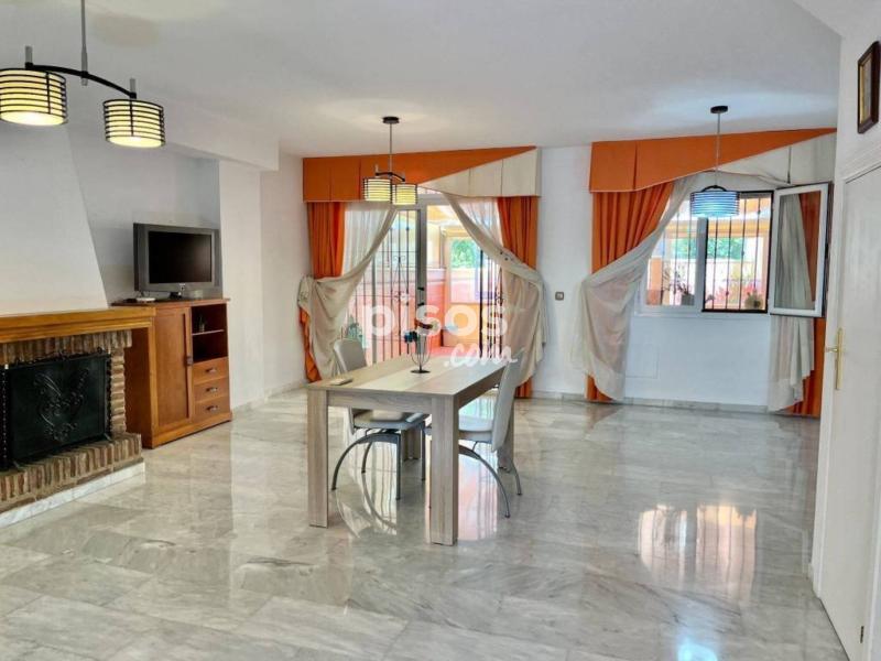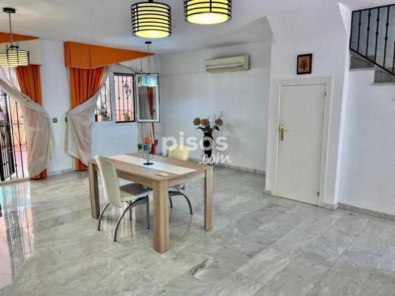 Espectacular adosado semi amueblado en alquiler para larga temporada en Los Pacos, Fuengirola.</br></br> </br></br> Distribuido en 3 plantas, este adosado cuenta con un porche en la entrada principal y garaje para un vehículo con vado permanente, cocina independiente con comedor, aseo, gran salón comedor con chimenea decorativa y salida al patio de aprox. 50 m2, el cual se encuentra cerrado gran parte con toldos y cristales.</br></br> </br></br> En la primera planta tiene 3 dormitorios dobles con armarios empotrados, balcones y dos baños completos ( uno de ellos en suite) y la última planta está la buhardilla con un pared de estas de madera de alta calidad para biblioteca, ideal para usar como zona de estudio o despacho y una terraza con vistas despejadas.</br></br> </br></br> Una casa muy bonita, familiar, realmente cómoda para vivir todo el año.</br></br> </br></br> Cerca de todo tipo de servicios, comercios y transportes.</br></br> </br></br> La comunidad cuenta con piscina y jardines comunitarios al que se puede acceder desde el propio patio o varias calles.</br></br> </br></br> REQUISITOS:</br></br> </br></br> INGRESOS DEMOSTRABLES</br></br> </br></br> 2 MESES DE FIANZA</br></br> </br></br> GARANTÍA DE IMPAGO A CARGO DEL INQUILINO</br></br> </br></br> NO SE ADMITEN ANIMALES.[IW]