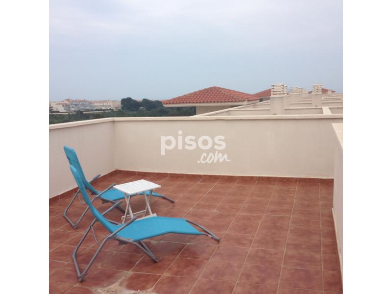 Descubre este tranquilo ático en el Residencial Cala Arenas Este apartamento-ático totalmente equipado cuenta con 1 habitación y tiene capacidad para 4 personas, lo que lo convierte en el lugar perfecto para vivir. Se alquila todo el año. Al ingresar a este maravilloso ático, te recibirán un amplio salón-comedor y una cocina americana, donde podrás preparar deliciosas comidas mientras disfrutas de la compañía de tus seres queridos. Además, el apartamento cuenta con un baño completo, una terraza y un gran solarim con vistas laterales al mar, donde podrás relajarte y disfrutar de las hermosas puestas de sol. Para tu comodidad, el ático está equipado con aire acondicionado, tanto para el calor como para el frío, lo que te permitirá disfrutar de una temperatura agradable durante todo el año. Además, el edificio cuenta con ascensor y parking subterráneo, para que no tengas que preocuparte por encontrar un lugar para estacionar tu vehículo. El complejo residencial también ofrece dos piscinas, dos pistas de padel, dos parques infantiles y zonas comunes, donde podrás refrescarte y relajarte después de un día en la playa. Y hablando de la playa, este ático se encuentra a diez minutos caminando de Playa del Moro, una de las playas más hermosas de la zona. La ubicación de este ático es inmejorable, ya que se encuentra en una zona muy tranquila No pierdas la oportunidad de vivir en una de las zonas mas tranquilas y bonitas de la Costa Azahar