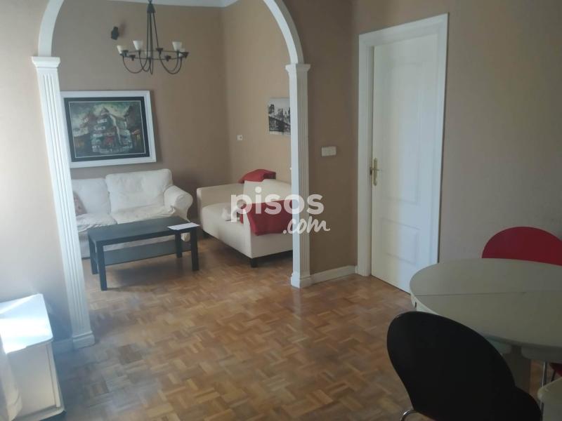 Piso luminosísimo, 2 dormitorios , uno con cama de matrimonio y gran armario empotrado, otro con cama de 1,10 ,armario y cómoda. Entrada, cocina equipada con horno ,baño con bañera grande, puerta blindada, aire acondicionada, frio calor, calefacción central, ventana en todas las estancias, comedor y gran salón con dos tresillos, en buen estado de 64 m² situado en la zona de Madrid Capital, en una edificación de entre 30 y 50 años de antigüedad y localizado en la 5ª planta, de un edificio de 6 .Está dividido en 2 habitaciones y 1 baño.y un gran salón comedor. Ofrece como acabados amueblado. .Sin agencia, directamente con la propiedad. Se requiere nóminas , un mes de fianza