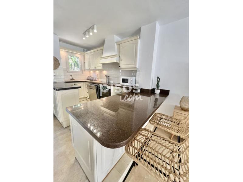 Escápese a esta casa adosada recientemente redecorada para una escapada soleada con sus seres queridos. Convenientemente situado a poca distancia de supermercados, bares, restaurantes, farmacia, parada de autobús y la playa, puede olvidarse de su coche y realmente relajarse. Con 4 dormitorios, 3 baños y un aseo adicional, esta propiedad aloja cómodamente a una familia grande. La decoración boho chic añade un toque elegante, mientras que la terraza ofrece acceso directo a los jardines comunitarios y la piscina. La cocina abierta y el luminoso salón proporcionan el escenario perfecto para crear maravillosos recuerdos bajo el sol español. Para cambiar de aires, Marbella está a sólo 15 minutos en coche, y Puerto Banús a pocos minutos más