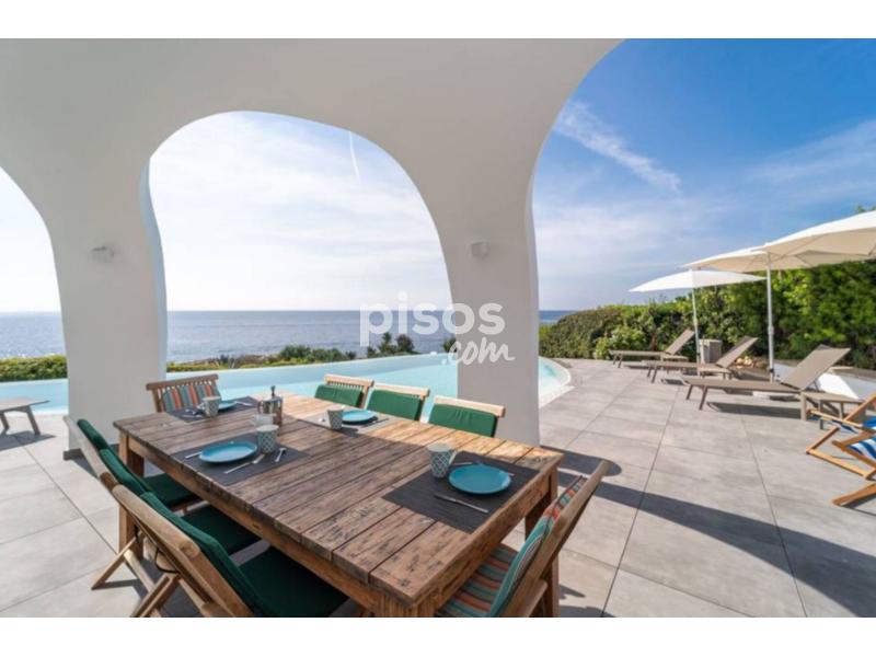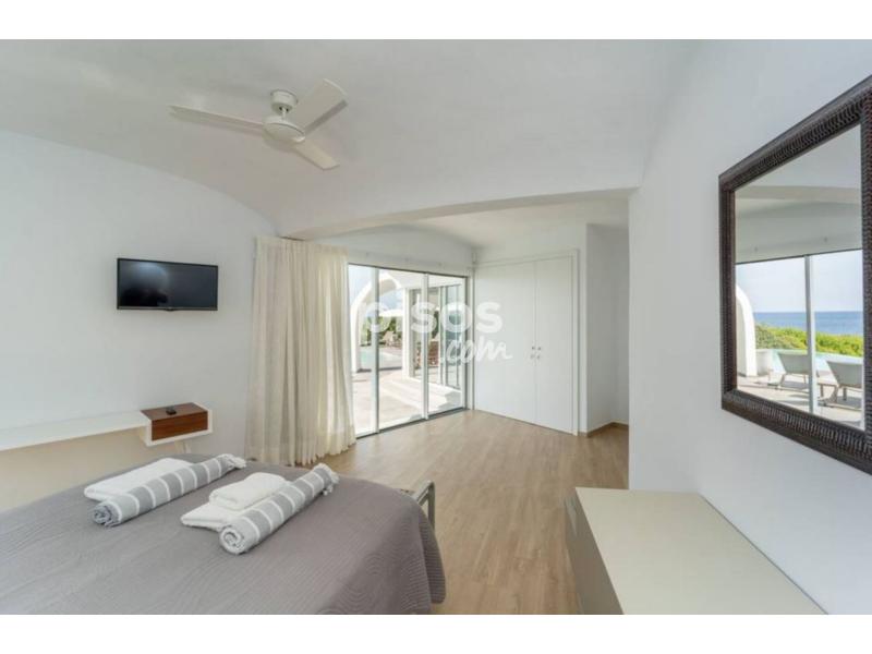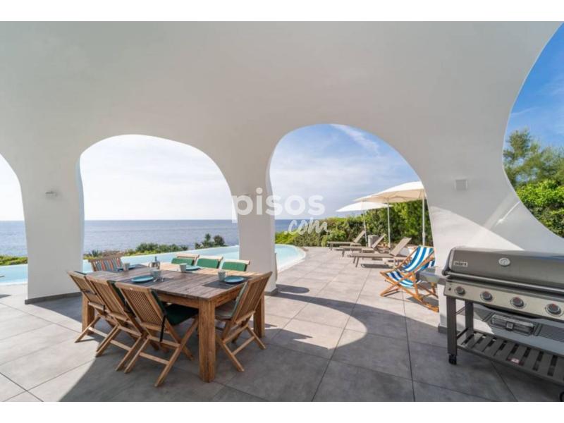 La impresionante villa ofrece un entorno al aire libre excepcional, con vistas impresionantes al mar. Una piscina infinita de agua salada de 20 metros de largo por 4 metros de ancho invita a los huéspedes a refrescarse mientras disfrutan del paisaje. Hamacas que les ofrecen el lugar perfecto para relajarse y tomar el sol. Además, una barbacoa bajo un amplio porche permite organizar comidas al aire libre mientras se disfruta de la brisa marina y poder disfrutar de las bonitas zonas ajardinadas rodean la propiedad. Esta espléndida y moderna villa, distribuida en una planta baja y un sótano, ofrece un interior lujoso y confortable para una estancia inolvidable. Todas las estancias están equipadas con aire acondicionado para garantizar el máximo confort en cualquier época del año. Al entrar, se encuentra un amplio salón comedor con dos cómodos sofás y una Smart TV, seguido de una amplia cocina abierta con cocina de inducción y todos los utensilios necesarios para preparar deliciosos platos. La villa cuenta con 5 habitaciones, todas ellas con armario y baño en suite. Dos de las habitaciones tienen camas dobles, mientras que las otras tres disponen de dos camas individuales cada una. En el sótano, hay una última habitación con cama doble, armario y baño en suite, junto a una práctica lavandería equipada con lavadora, secadora, plancha y tabla de planchar. Además, para mayor comodidad de los huéspedes que viajan con bebés, la villa dispone de una cuna y una trona. Con su diseño moderno y sus comodidades de lujo, esta villa es el lugar perfecto para disfrutar de unas vacaciones relajantes y memorables. La Marina de Son Ganxo es un encantador puerto deportivo ubicado en la costa sureste de Menorca, en un ambiente tranquilo y pintoresco, así como por su proximidad a hermosas playas y calas. Con sus aguas tranquilas y cristalinas, este puerto es un lugar perfecto para amarrar embarcaciones y disfrutar de actividades acuáticas como el buceo, el snorkel y el kayak. Junto al puerto, se encuentran diversos restaurantes y cafeterías donde los visitantes pueden disfrutar de la deliciosa gastronomía local, especialmente los platos de pescado fresco y mariscos. A pocos kilometros de Sant Lluís, y sus lugares de interés como la Iglesia de San Lluís, la Plaza de Sa Creu y el Museo Etnológico Molí de Dalt.